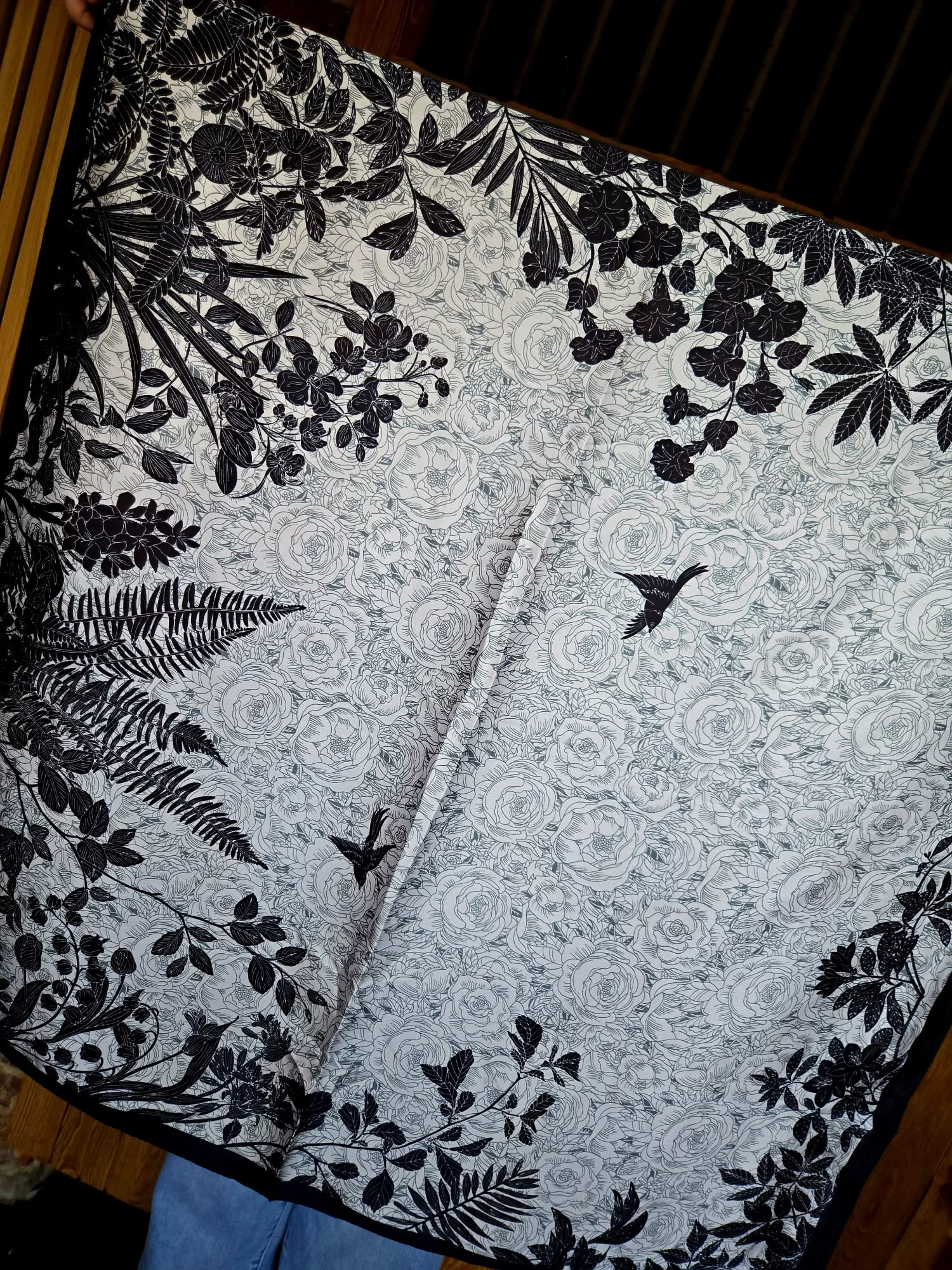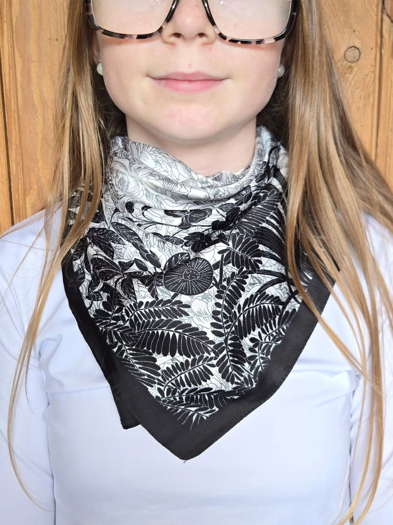 Foulard carré soyeux fleurs noir