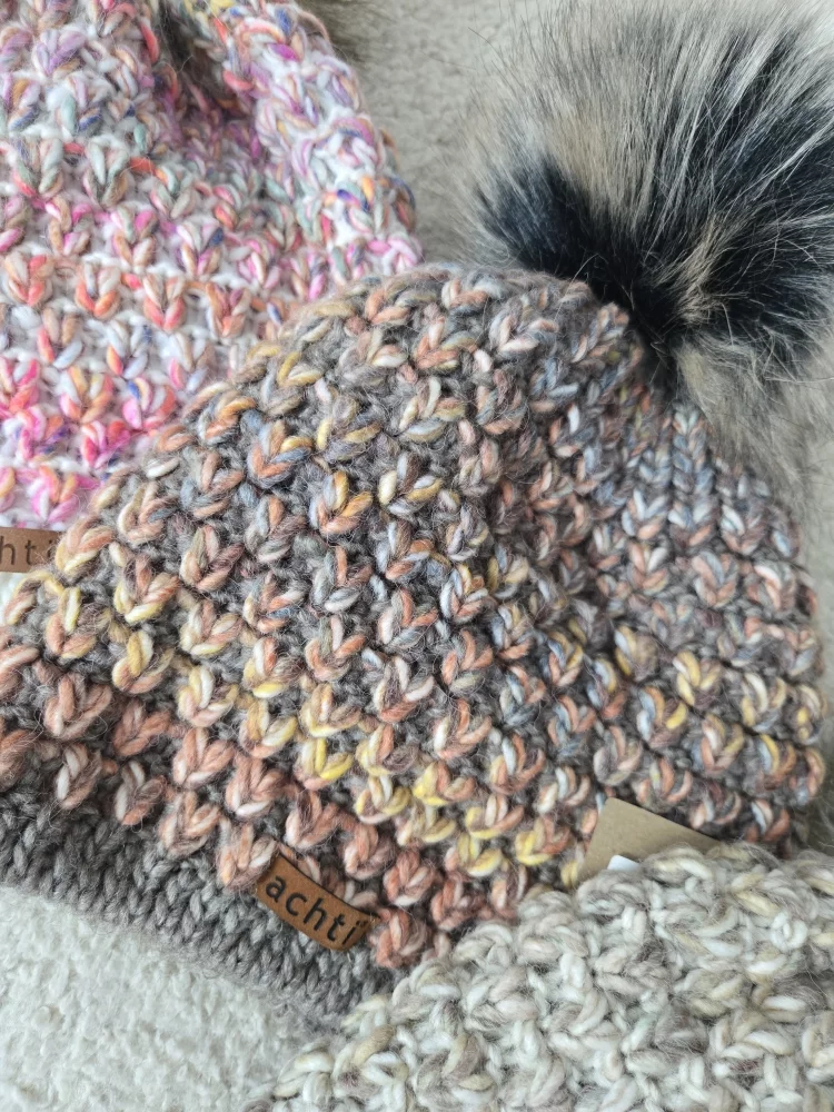 Bonnet maille et pompons