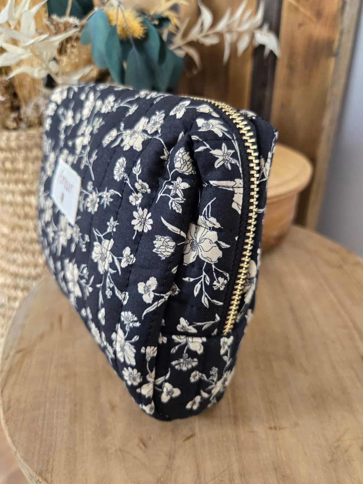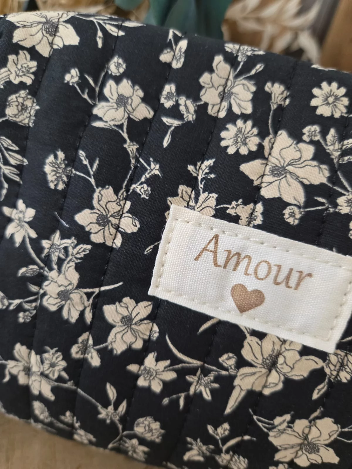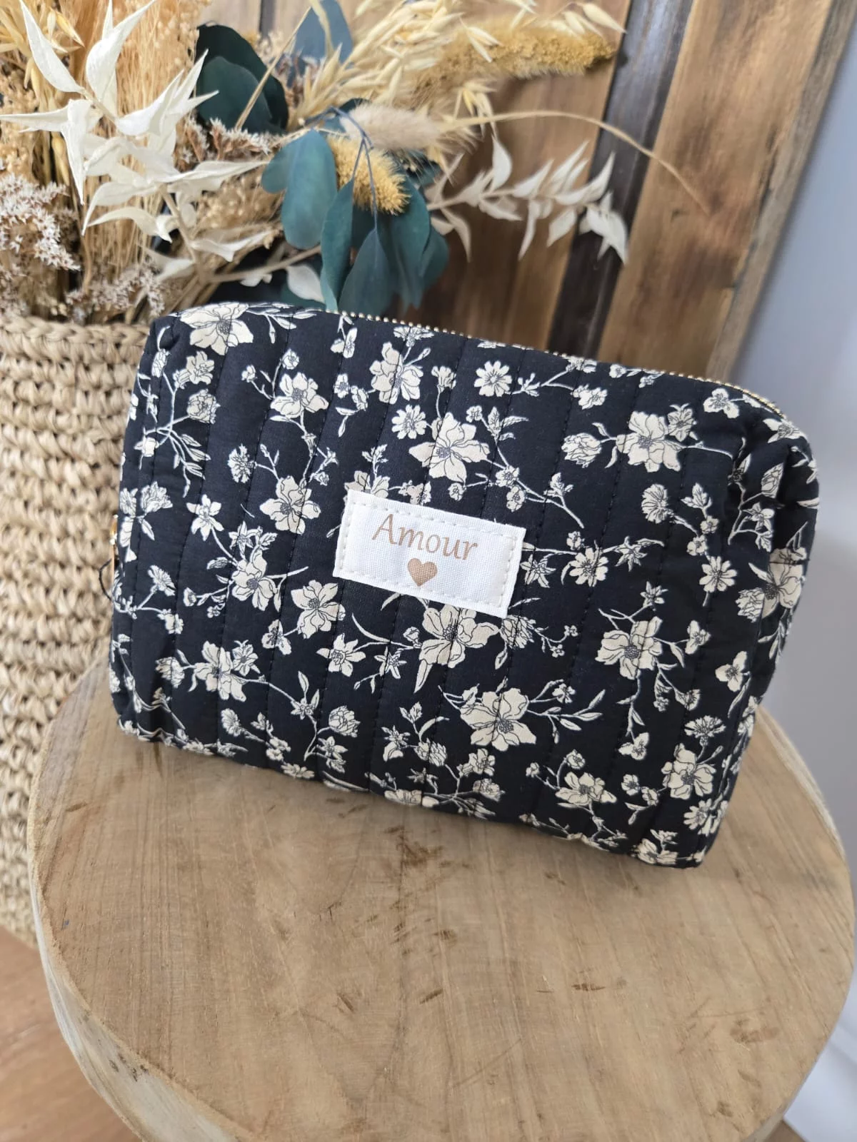 Trousse fleurs noir patch Amour