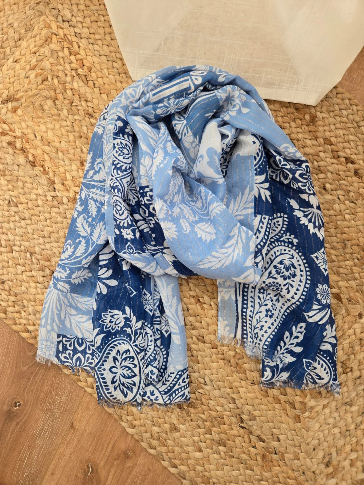 Foulard patchwork bleu lurex doré