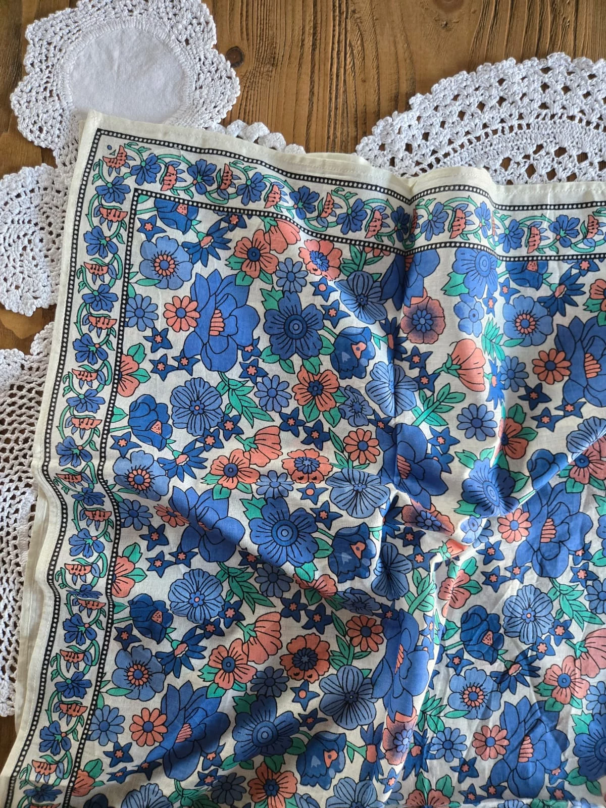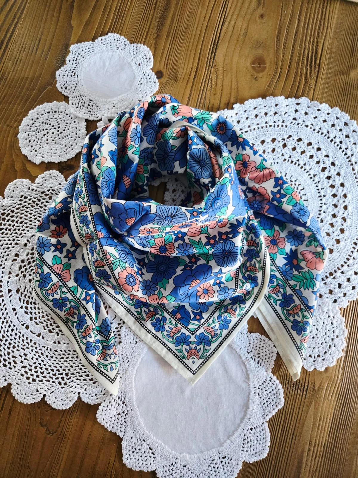 Carré coton fleurs bleu