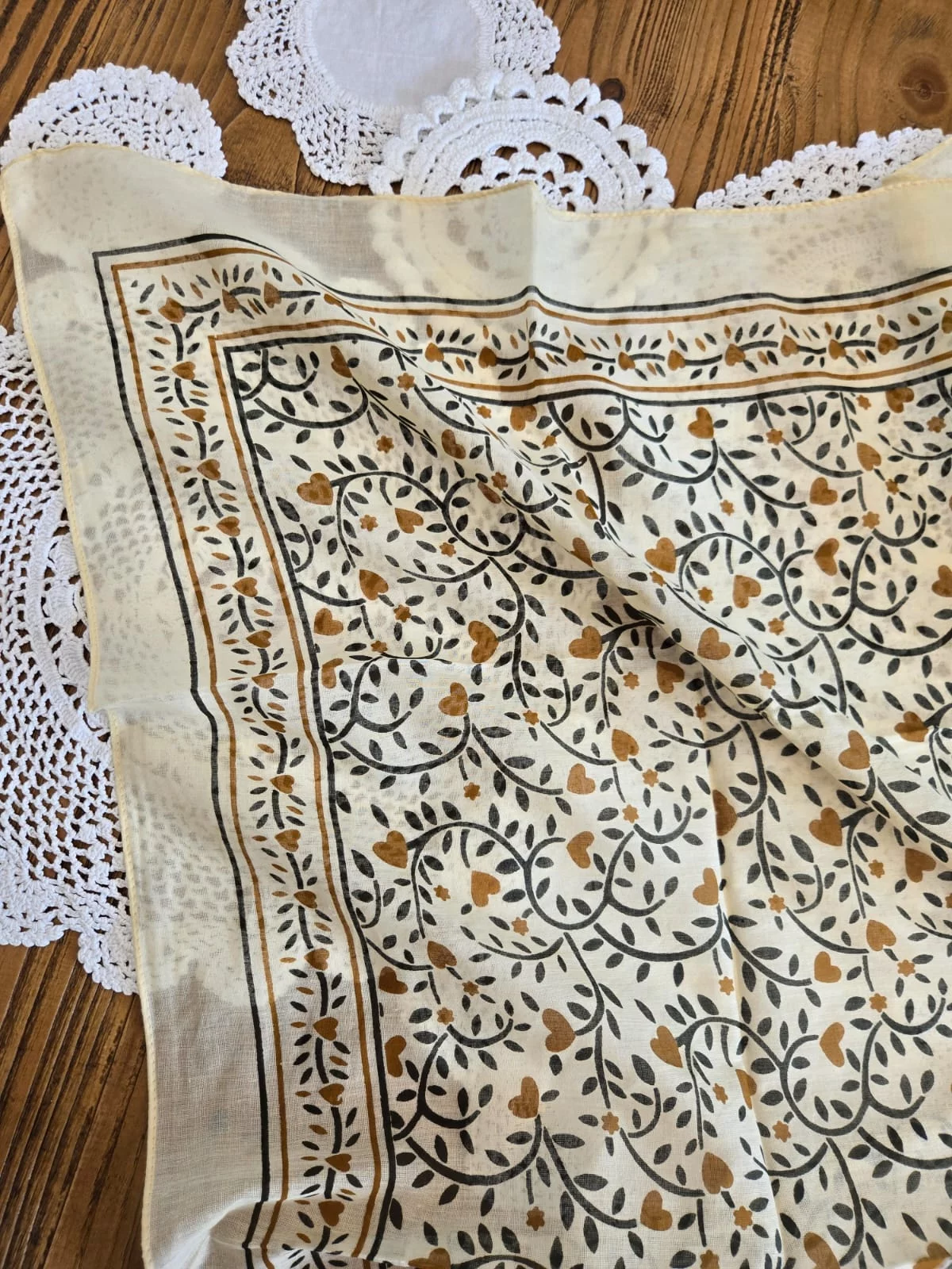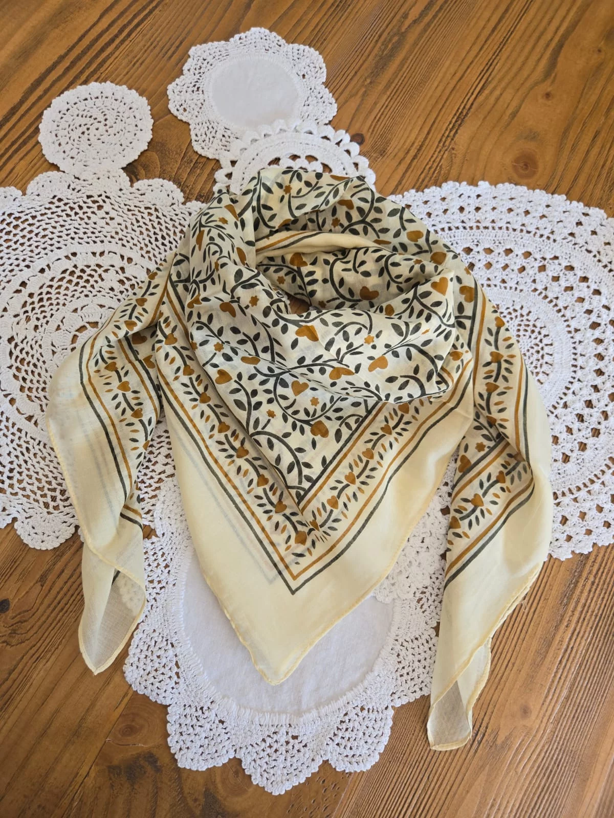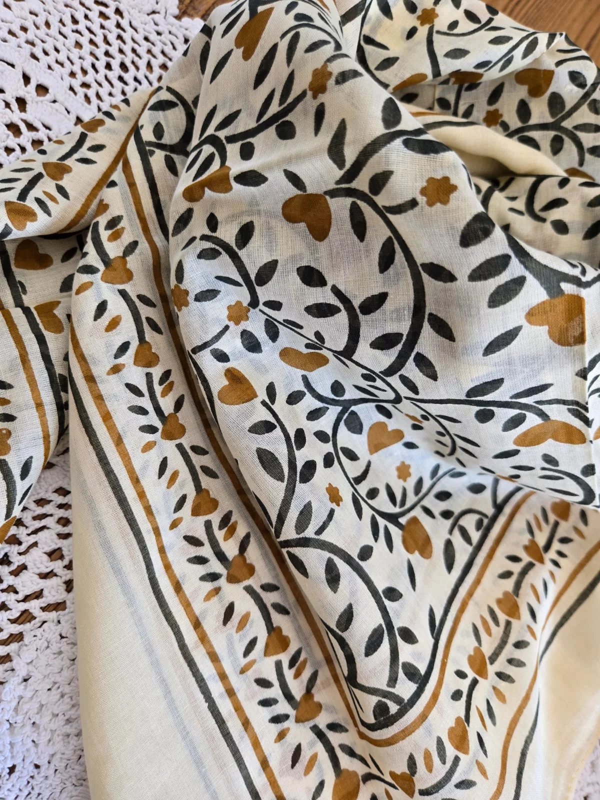 Carré coton coeur kaki et camel