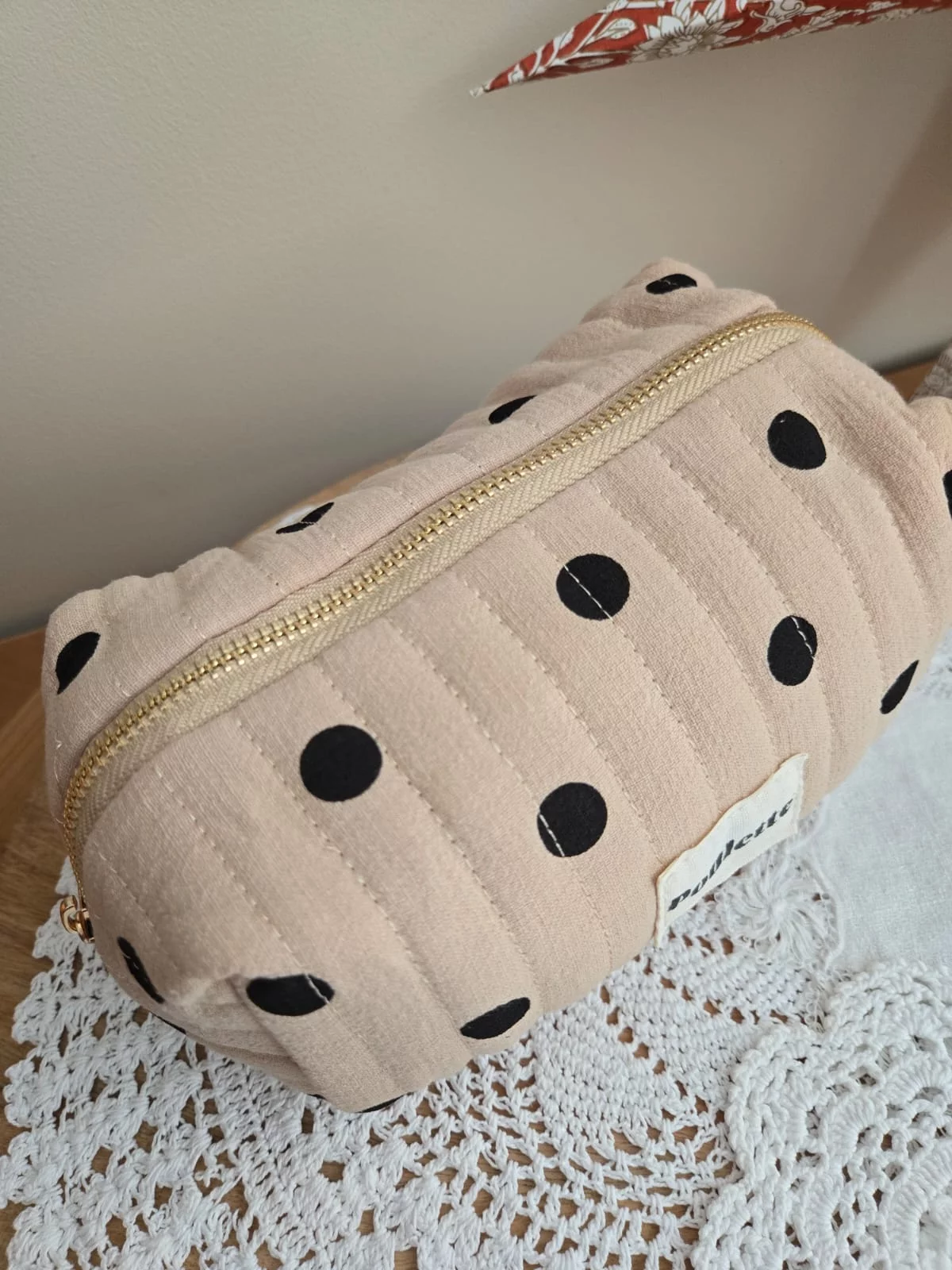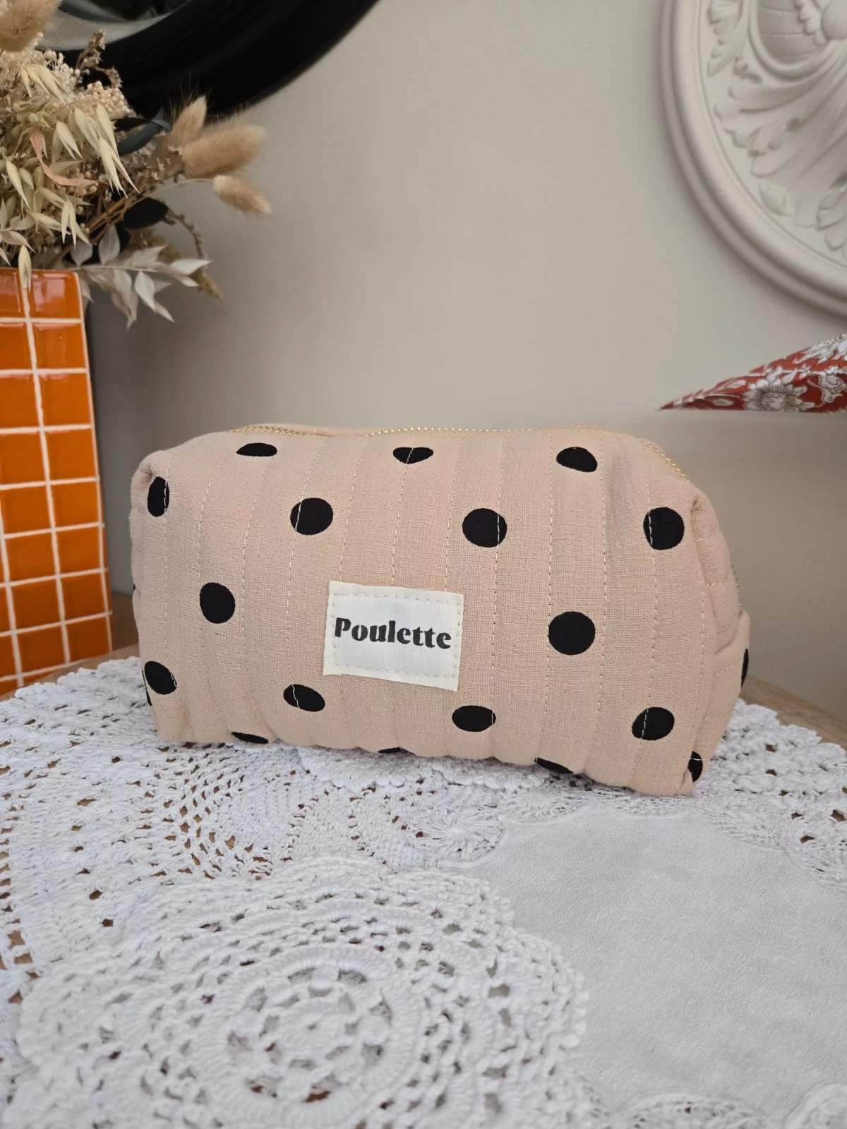 Trousse beige pois noir Poulette