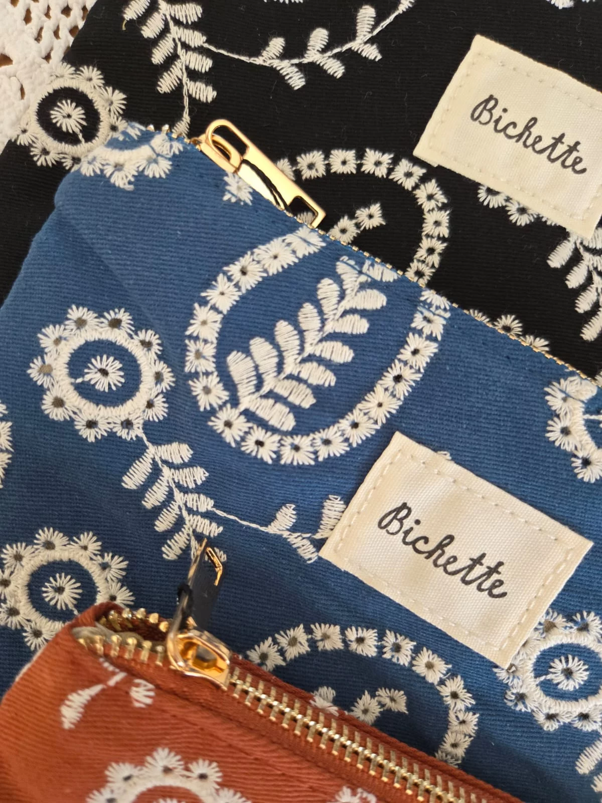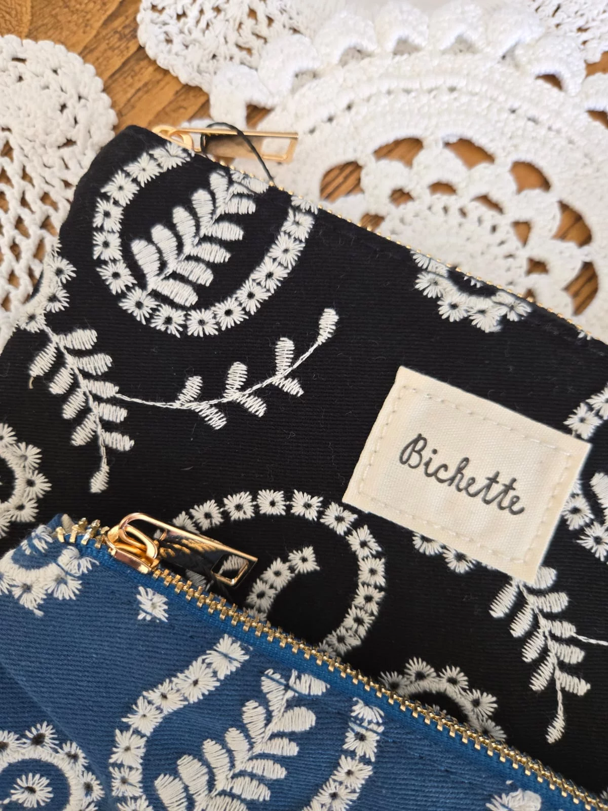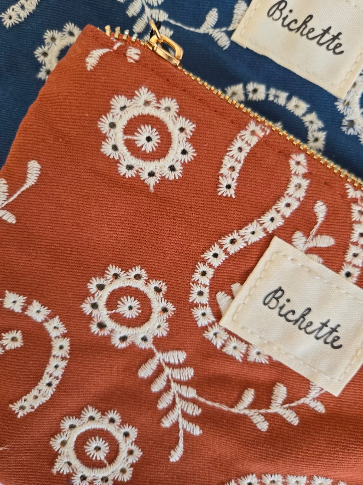 Pochette trousse tissu brodé Bichette