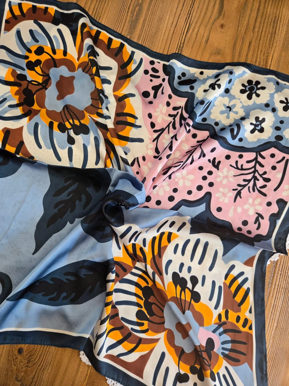 Foulard carré soyeux fleurs bleu