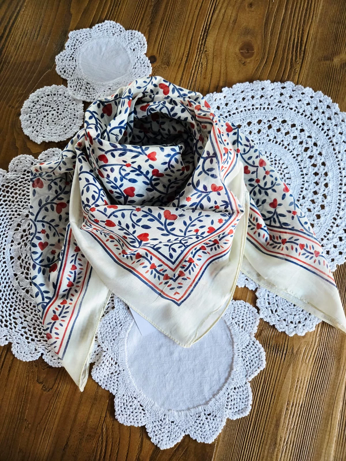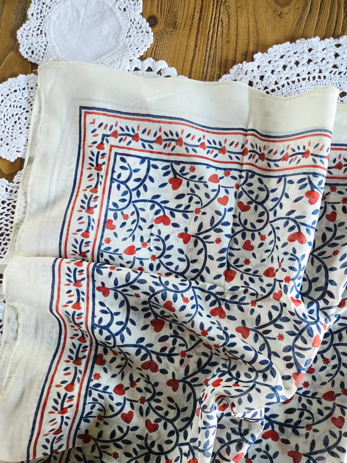 Carré coton coeur marine et rouge
