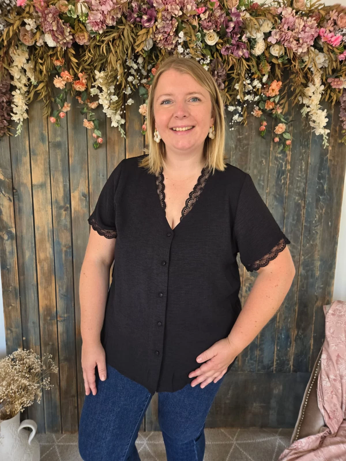 • Galon dentelle autour du col V