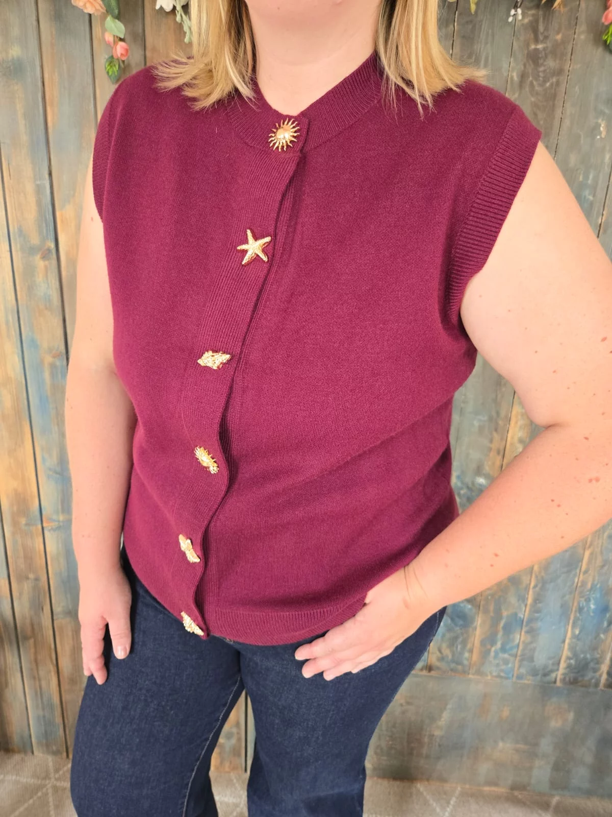 Gilet Jordan bordeaux boutons dorés