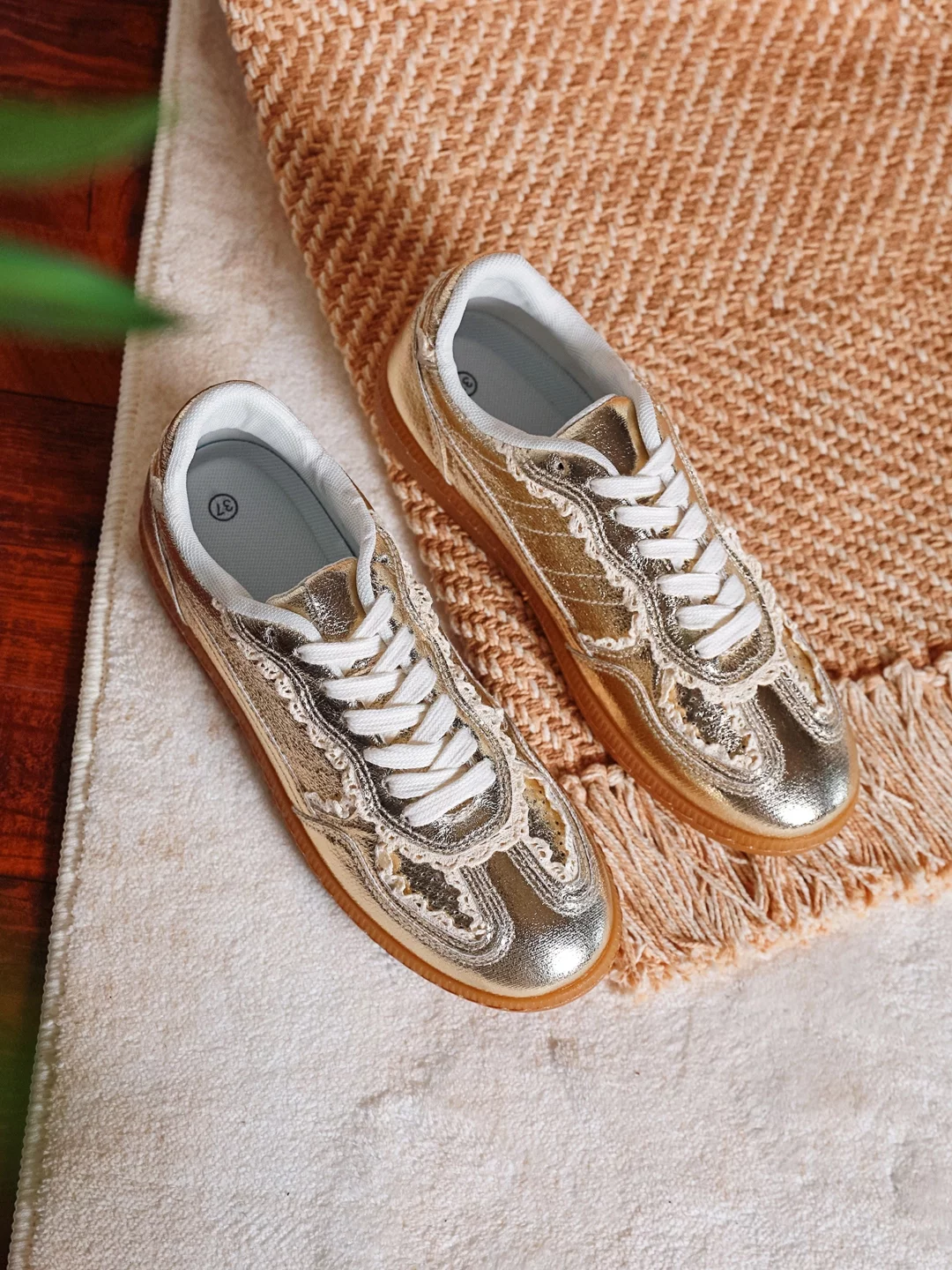 Baskets doré et biais dentelle