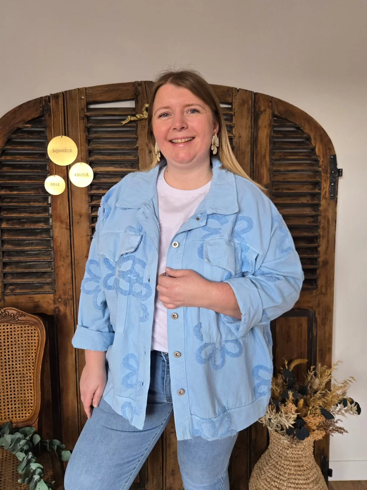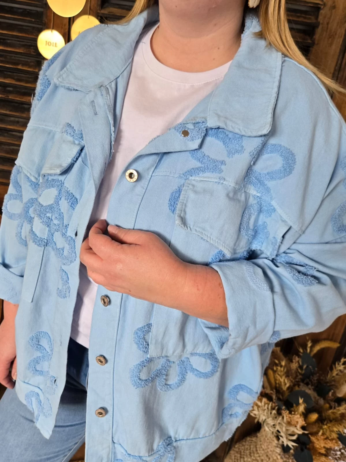 Veste Amandine bleu ciel fleurs