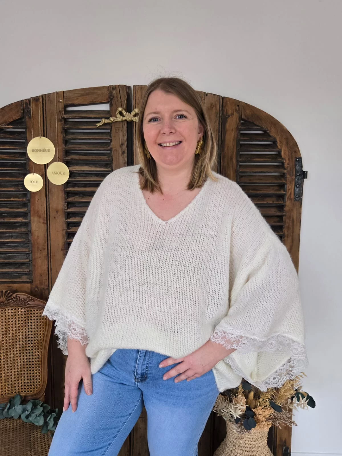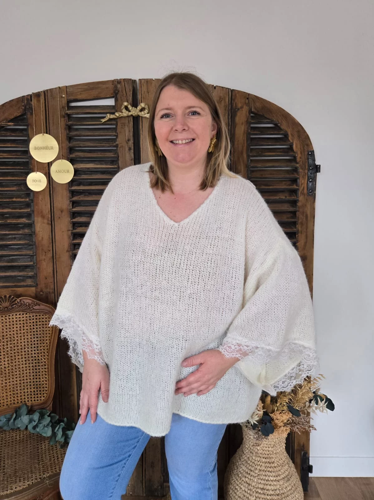 Pull maille et dentelle Valere ecru