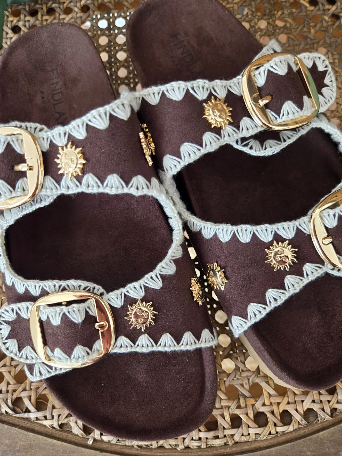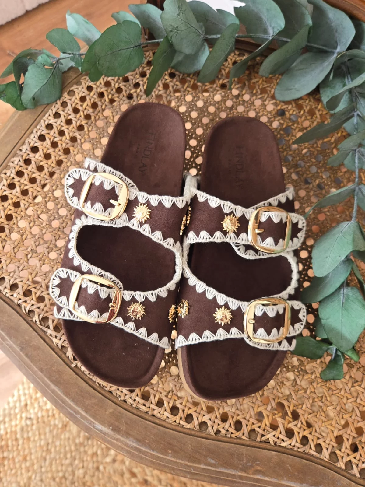 Mules claquettes choco broderies et soleil