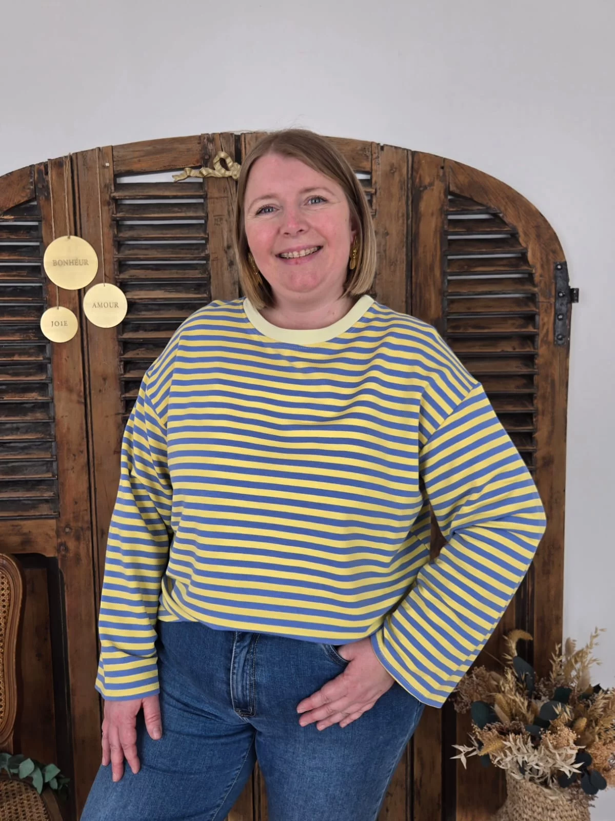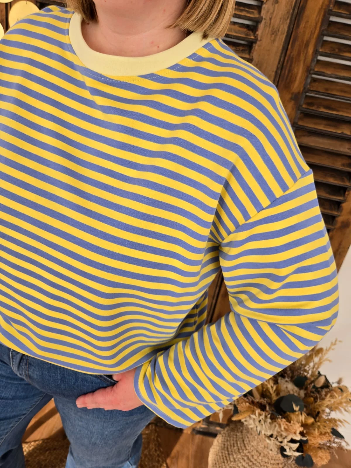 Sweat fin Germain rayé bleu et jaune