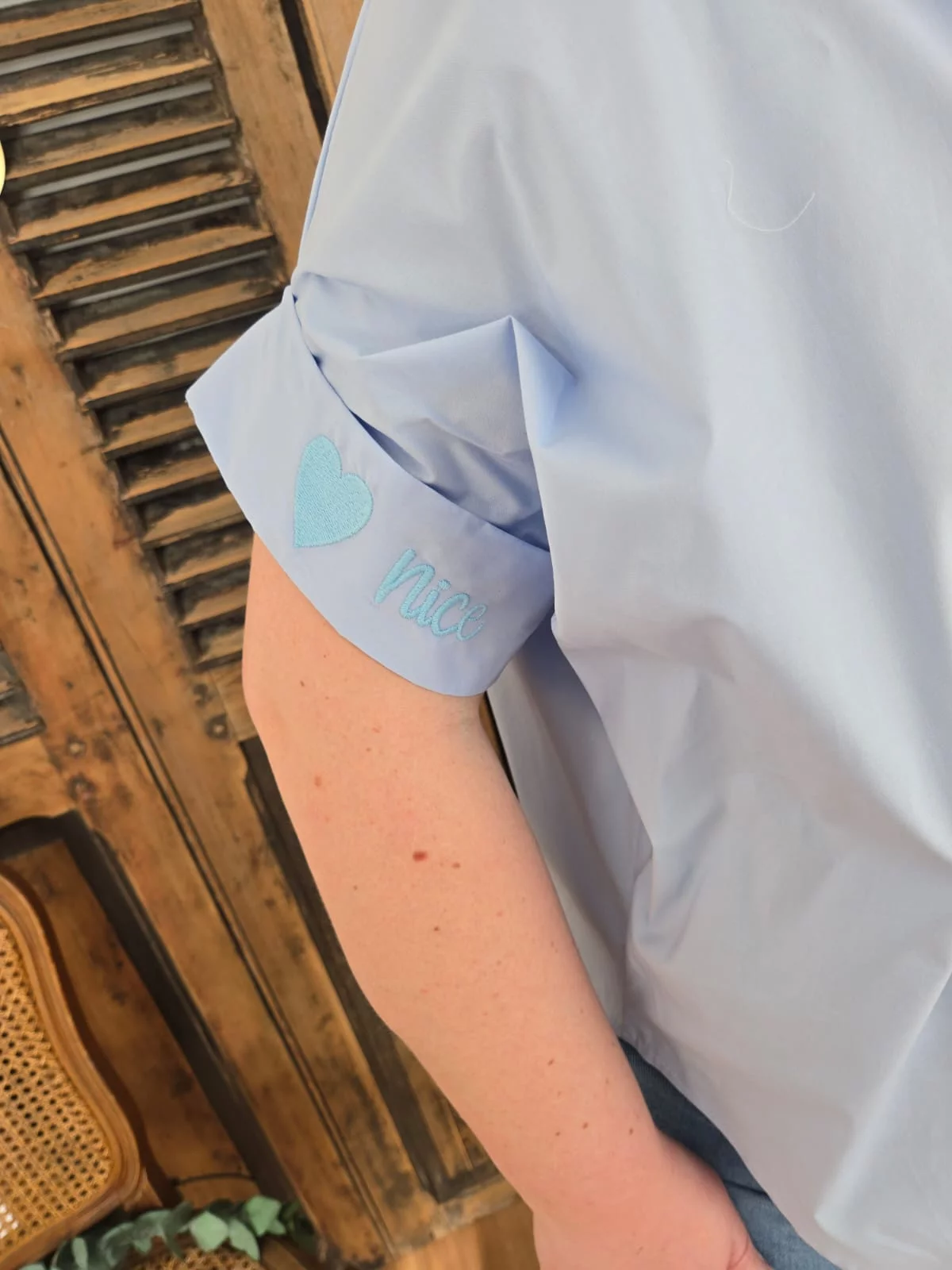 • Broderie coeur rouge devant, et une sur chaque bord de manches