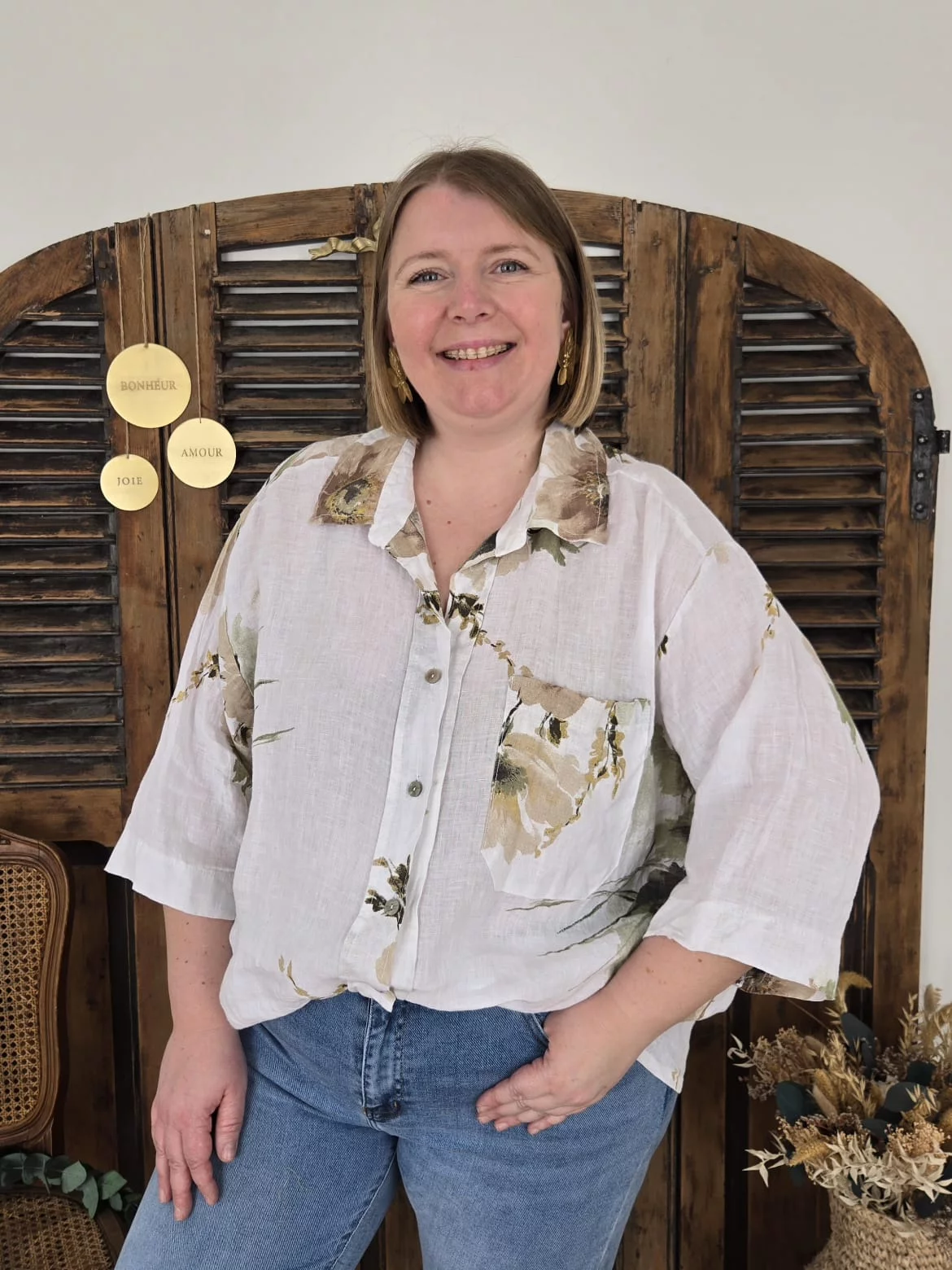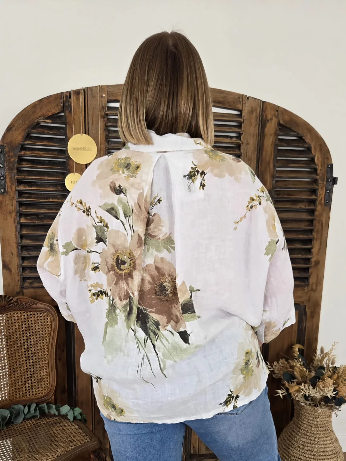 Chemise Luce lin blanc et fleurs