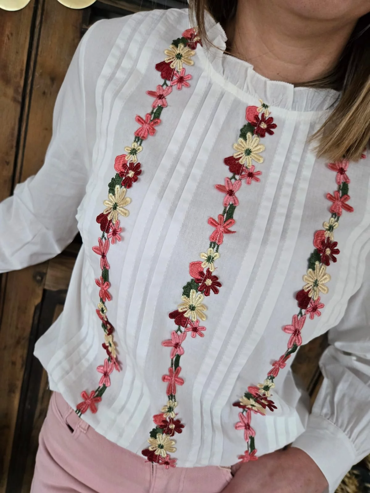 Blouse Diane blanche et patch fleurs