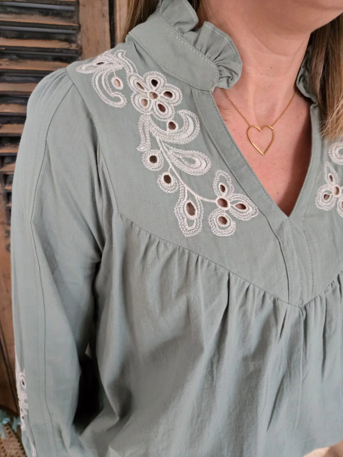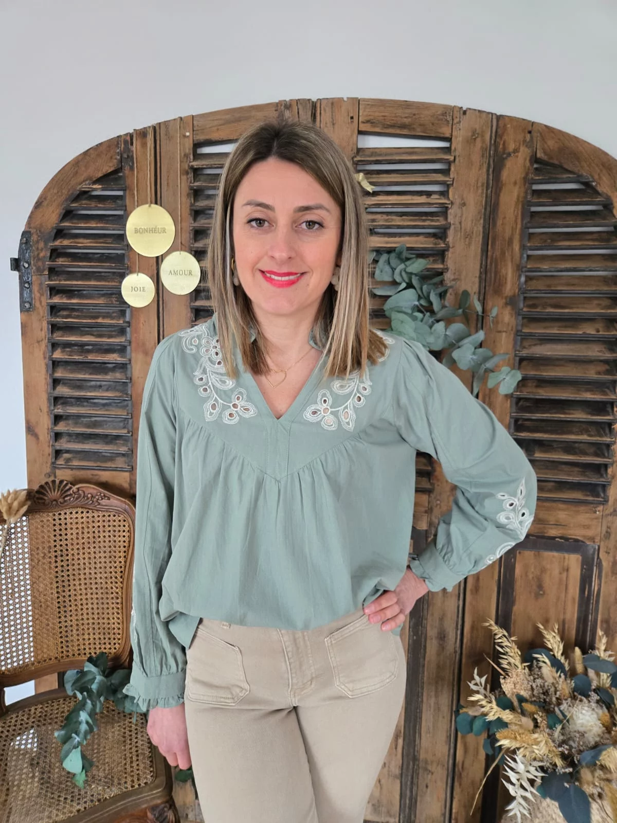 Blouse Martine vert pale brodée