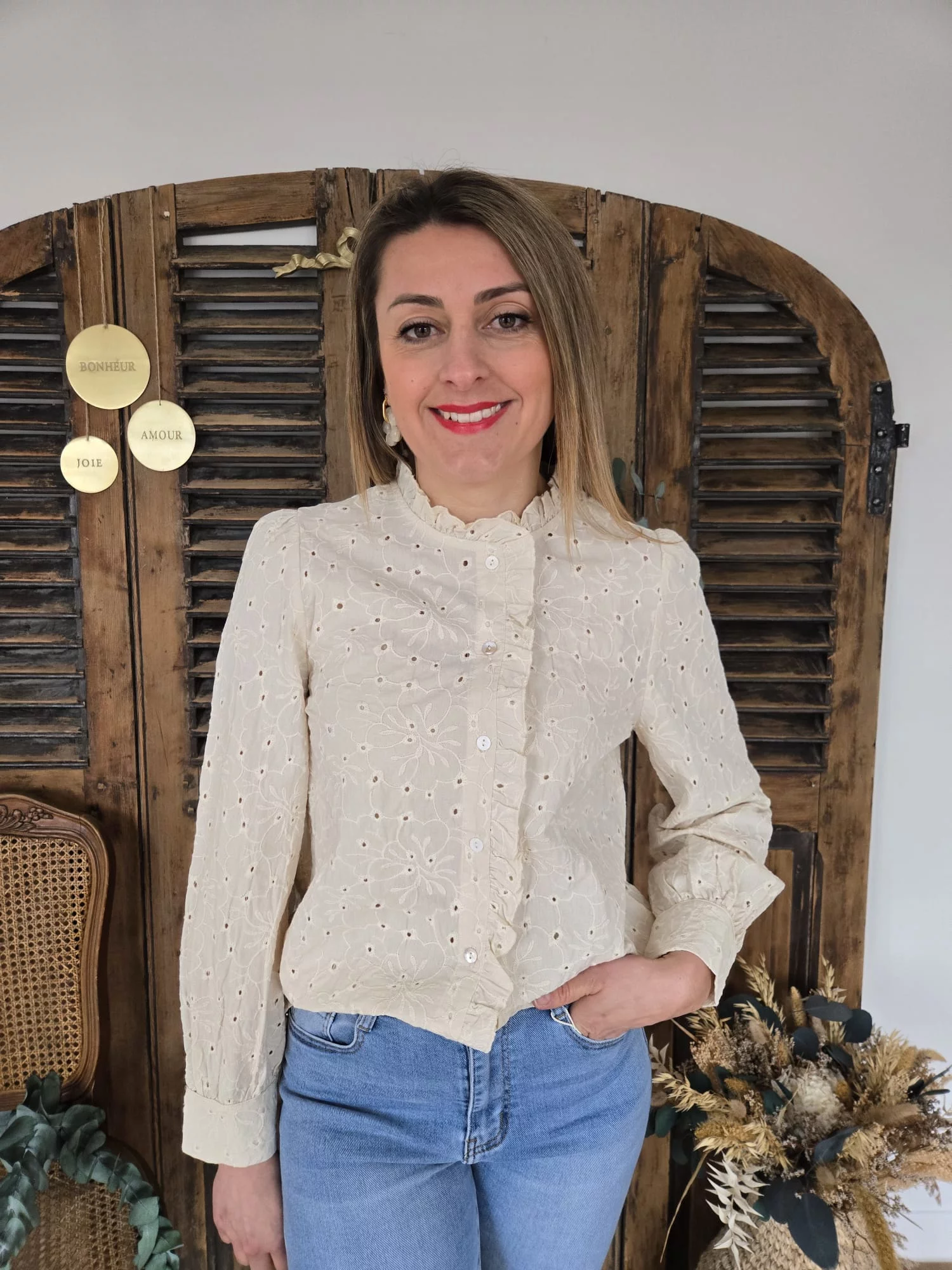 Chemise Benedicte broderie anglaise beige