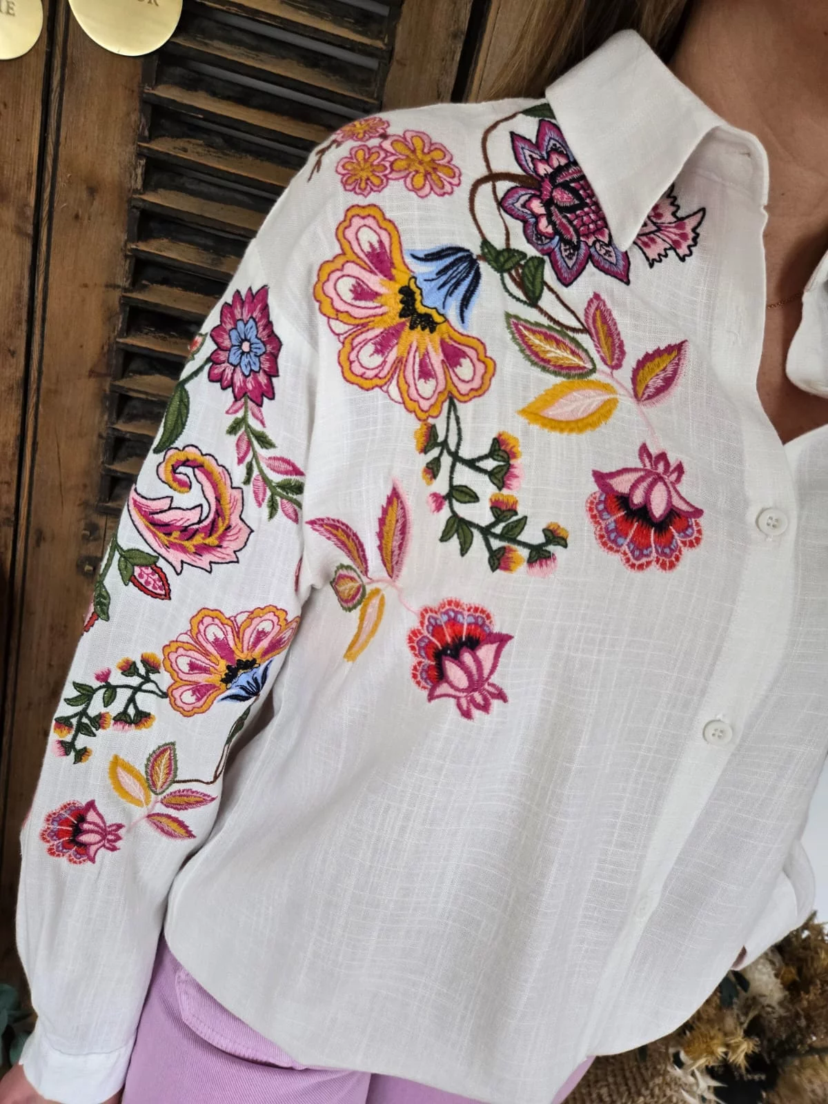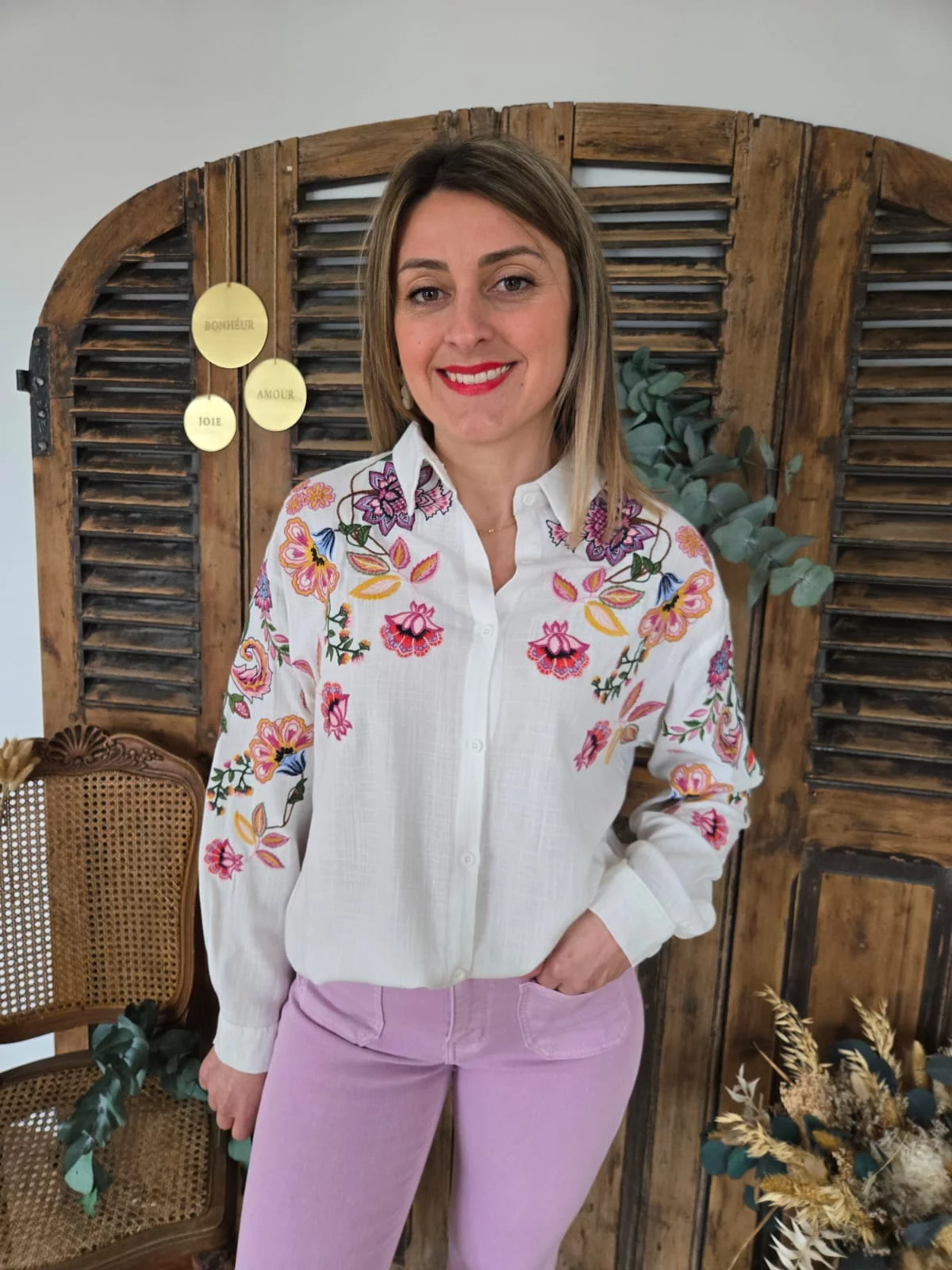 Chemise Dorine blanche brodée