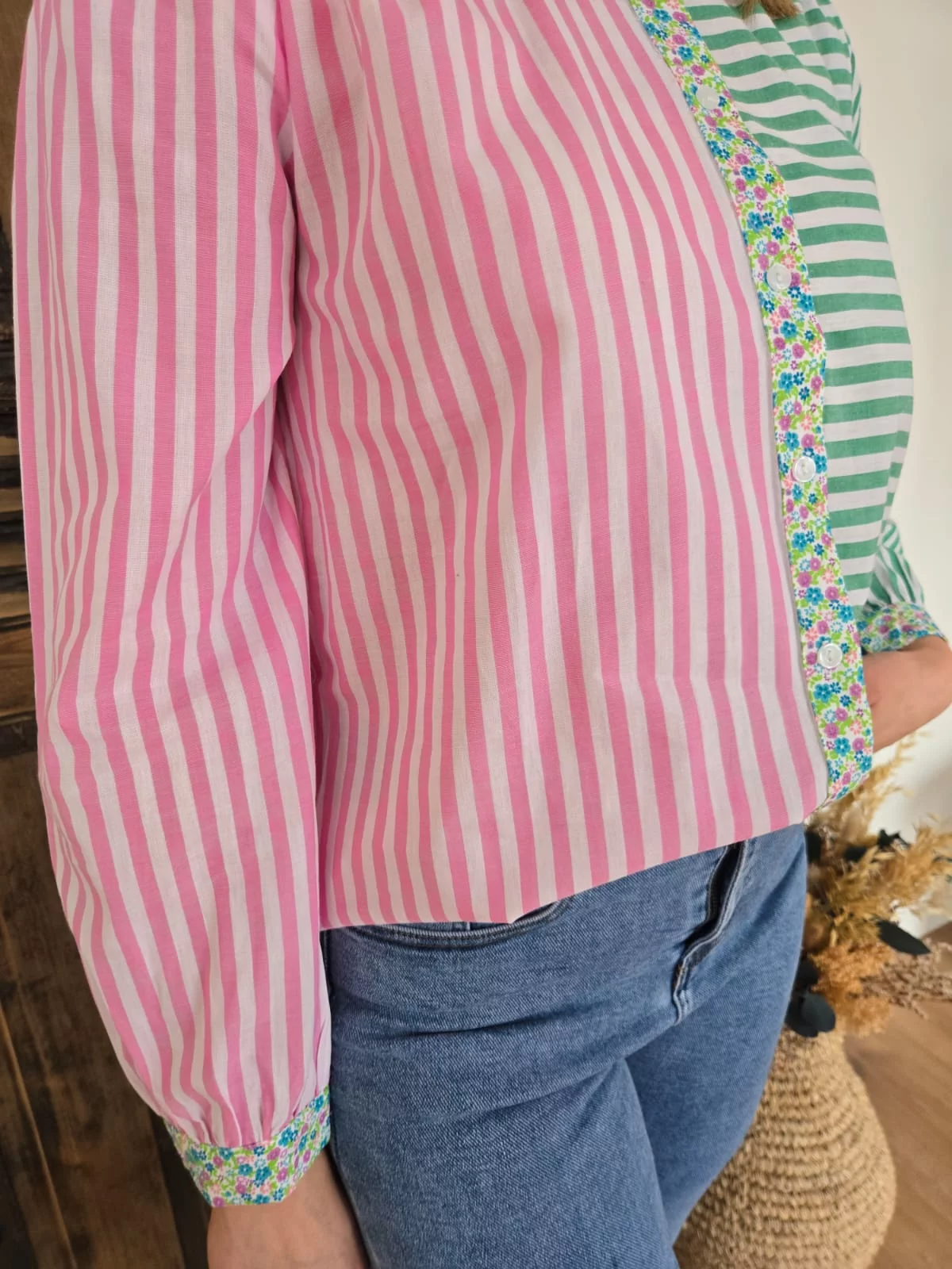 • Mix de tissu rayé et fleuri