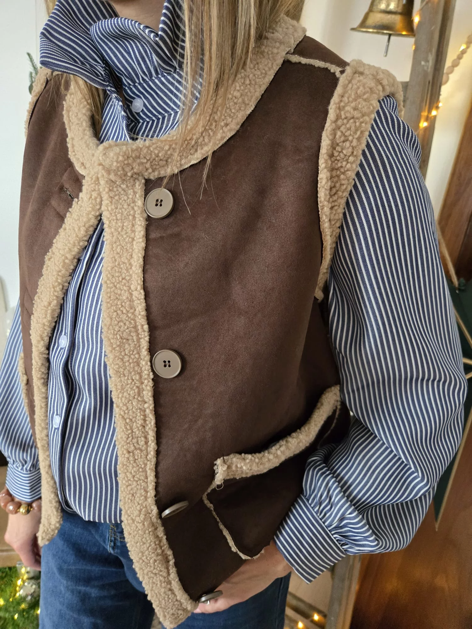 Gilet Bastien réversible bouclette et suédine choco