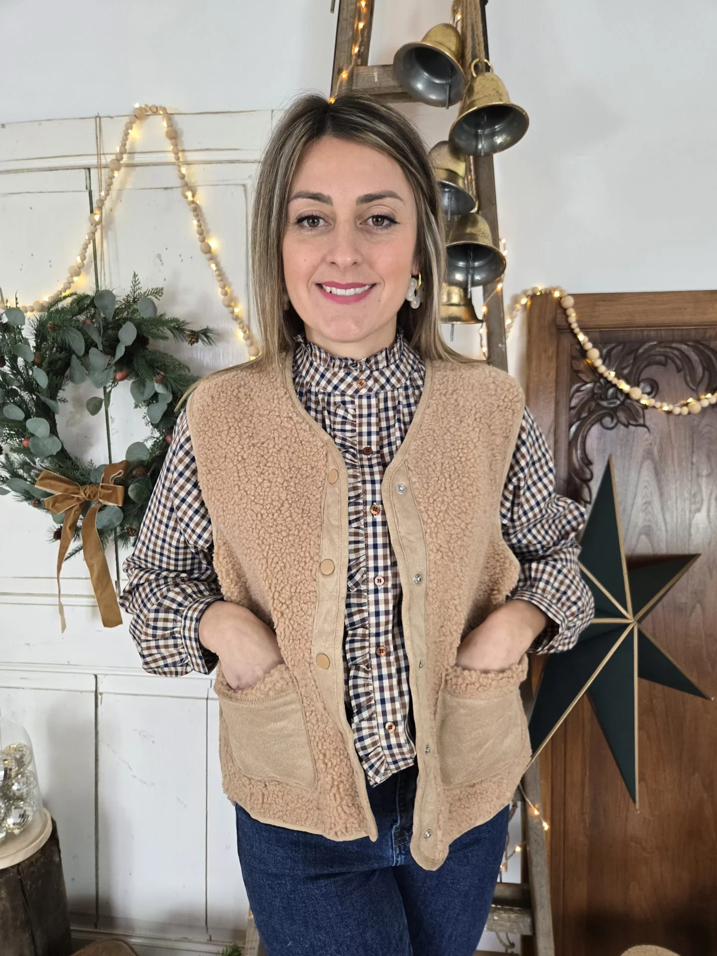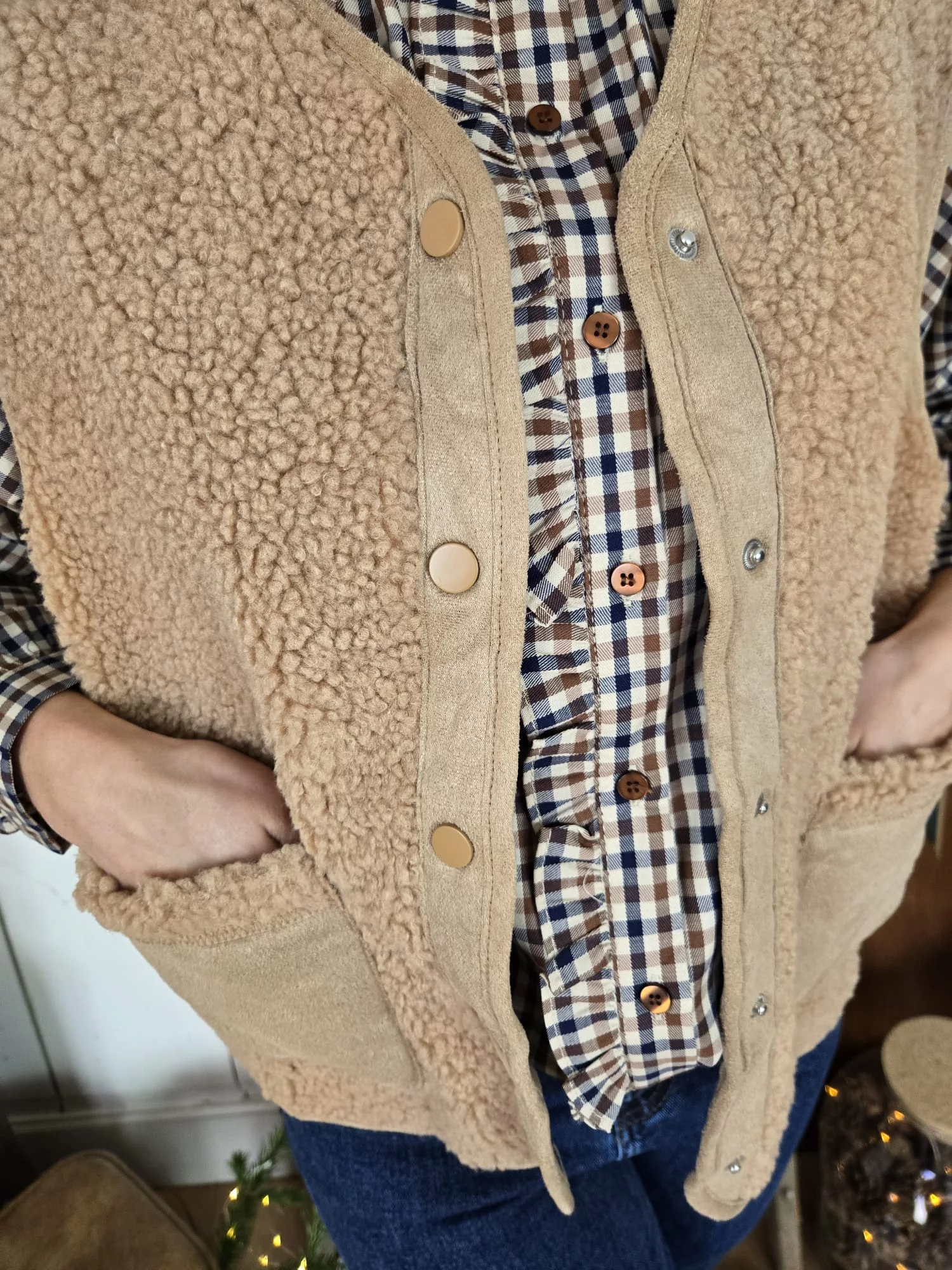 Gilet veste bouclette José camel