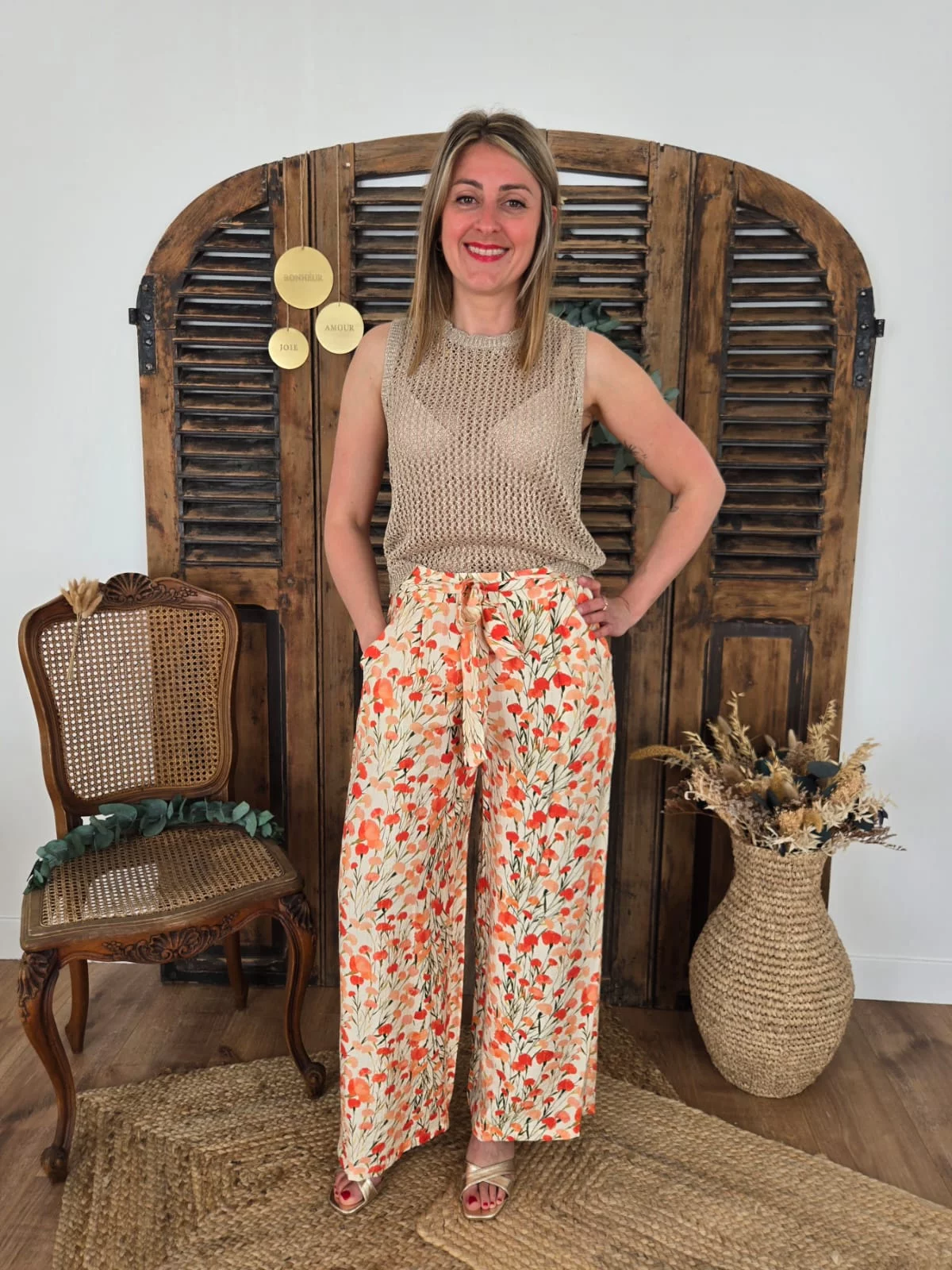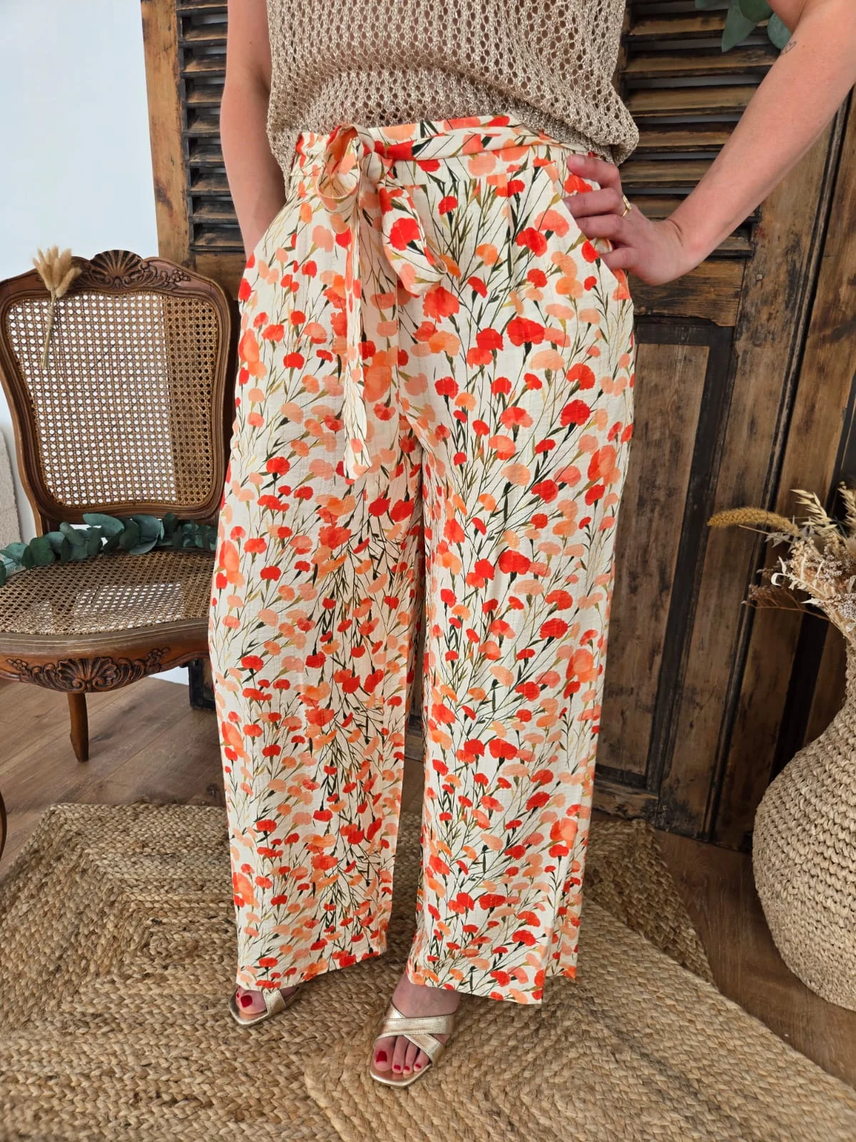 Pantalon Gabin fluide coquelicots corail