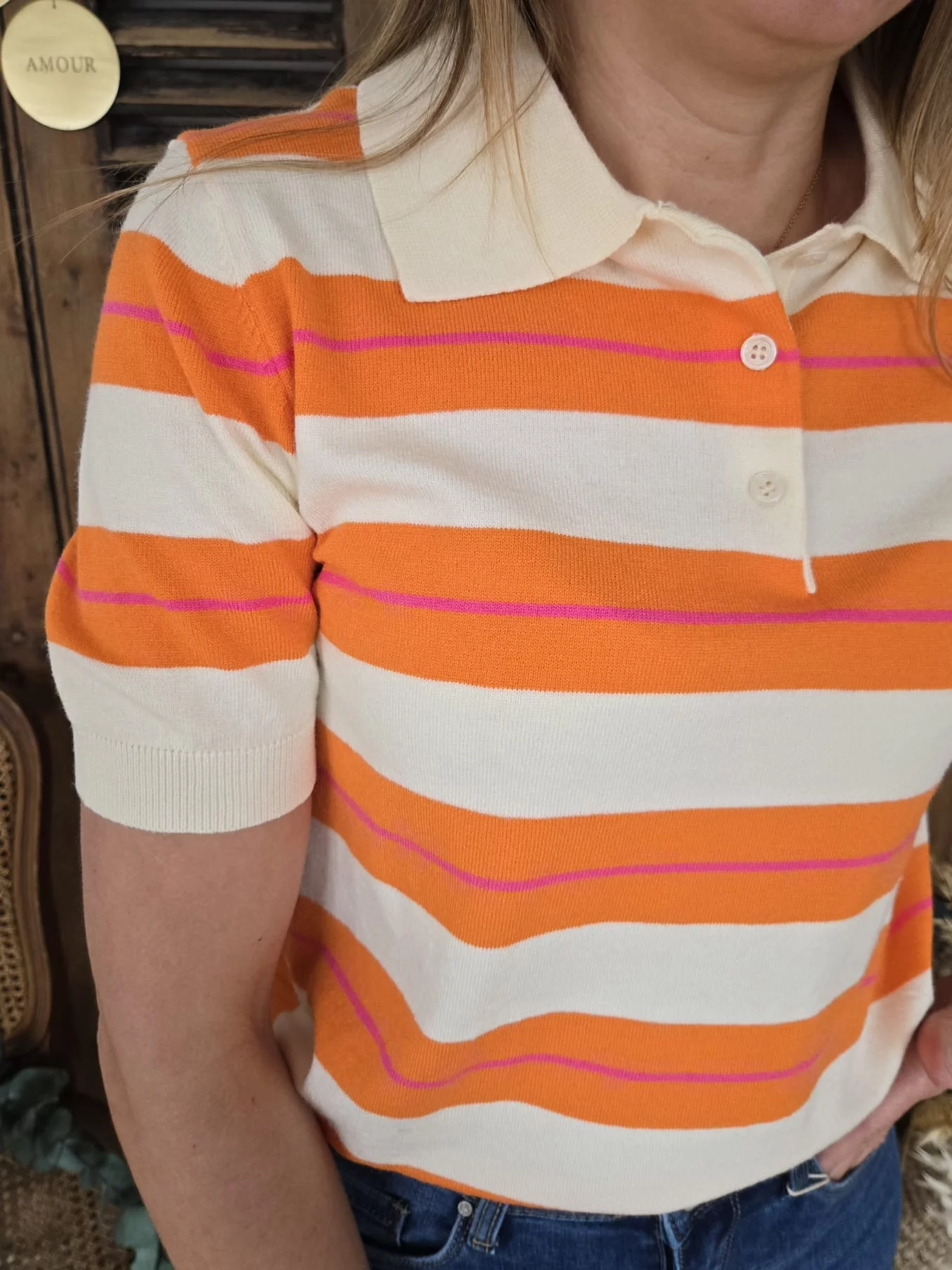 Pull polo Zach rayé beige et orange