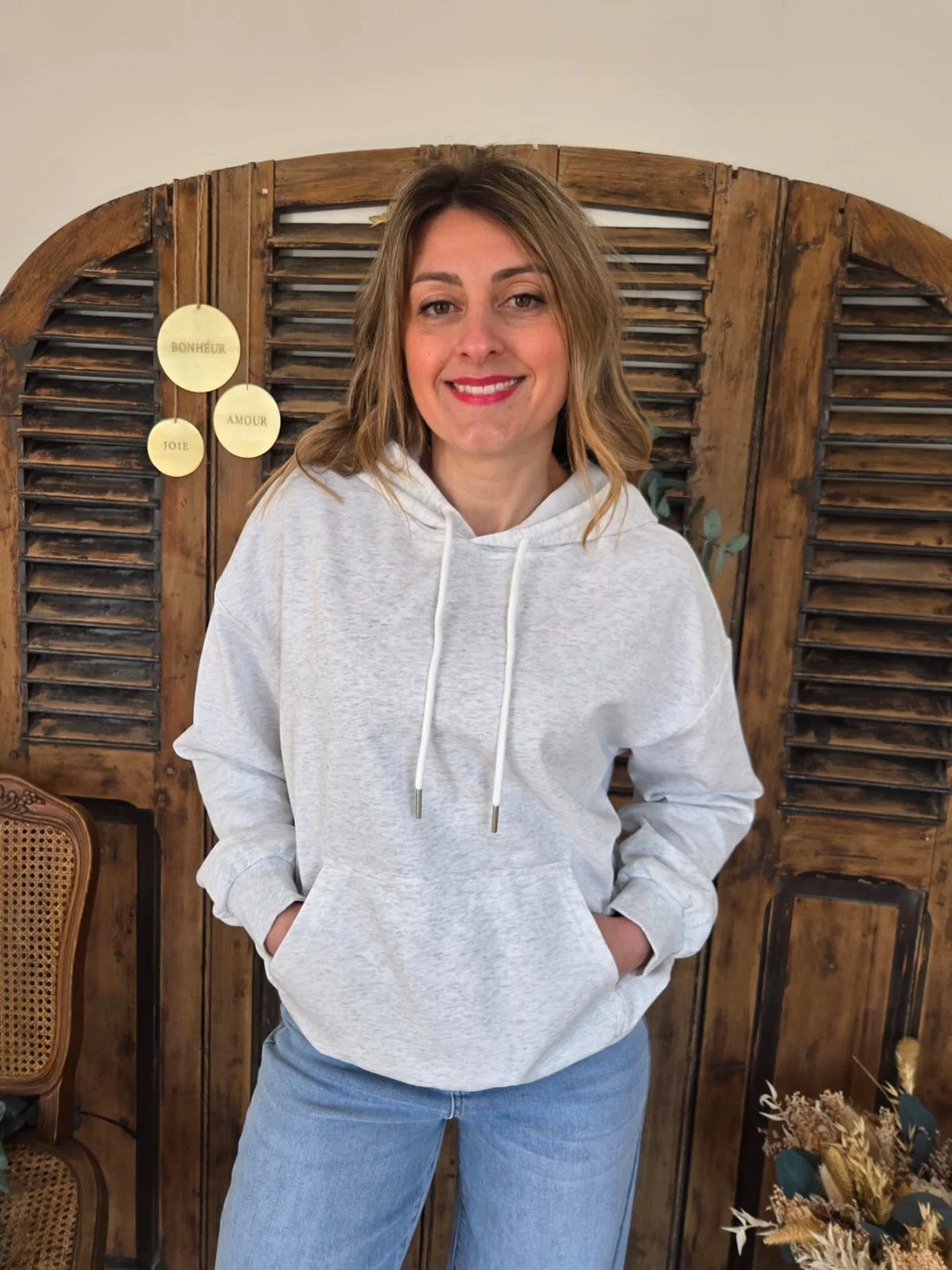 • A capuche gris clair chiné