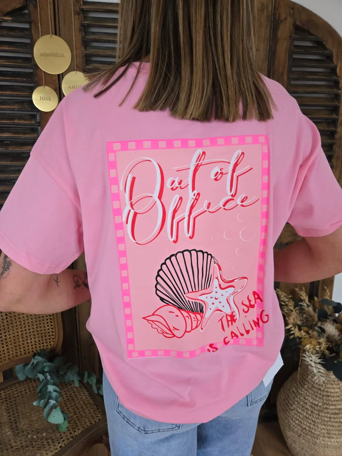 T-shirt coquillage fuchsia Out of office