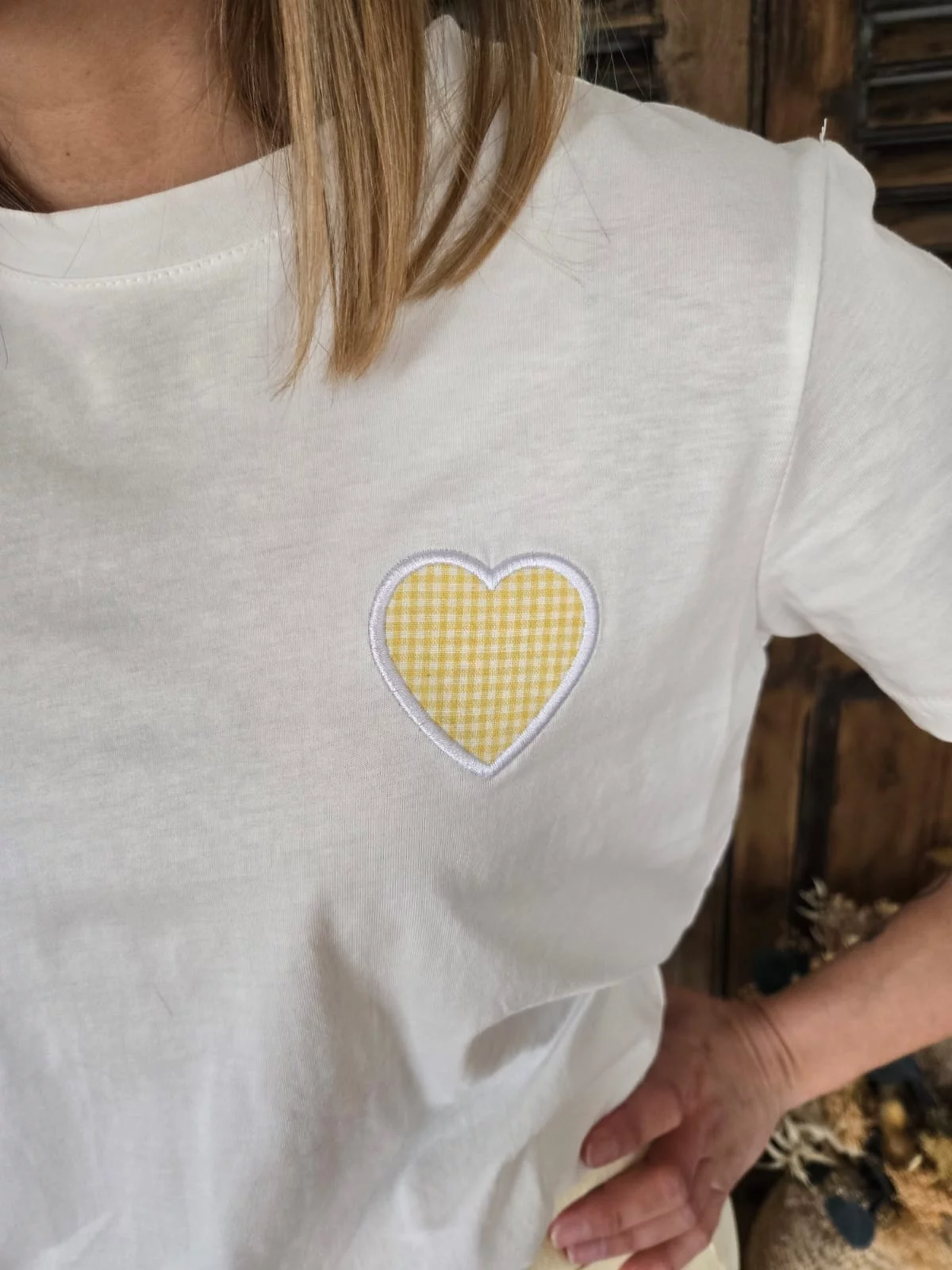 • Patch coeur vichy jaune