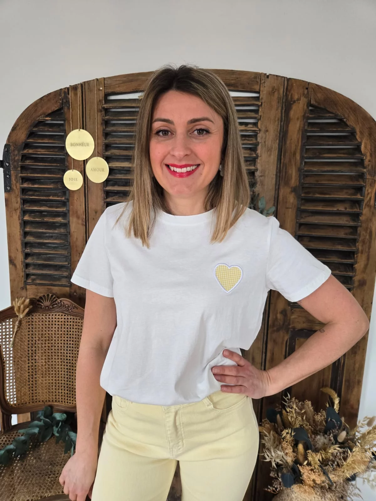 T-shirt Cesar blanc coeur vichy jaune
