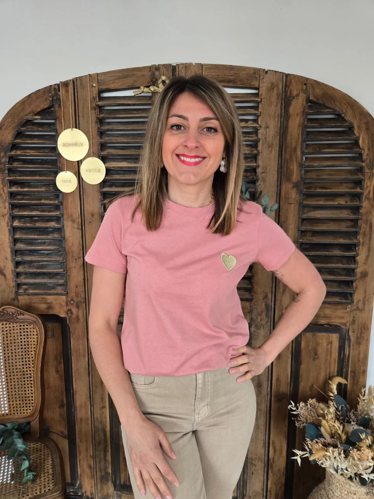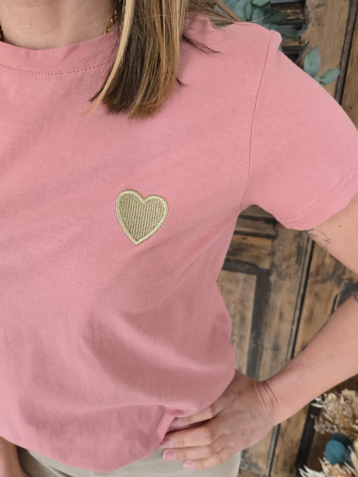 T-shirt Julien vieux rose coeur doré