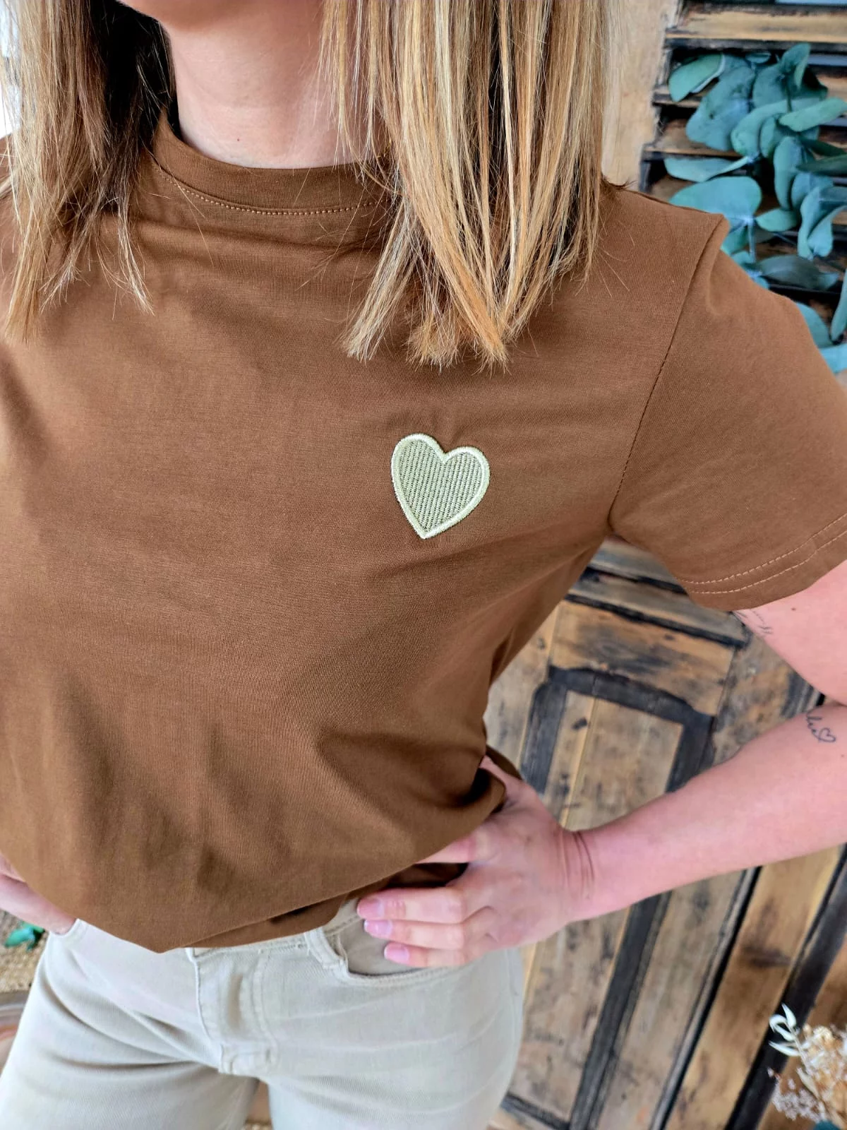 T-shirt Julien marron coeur doré