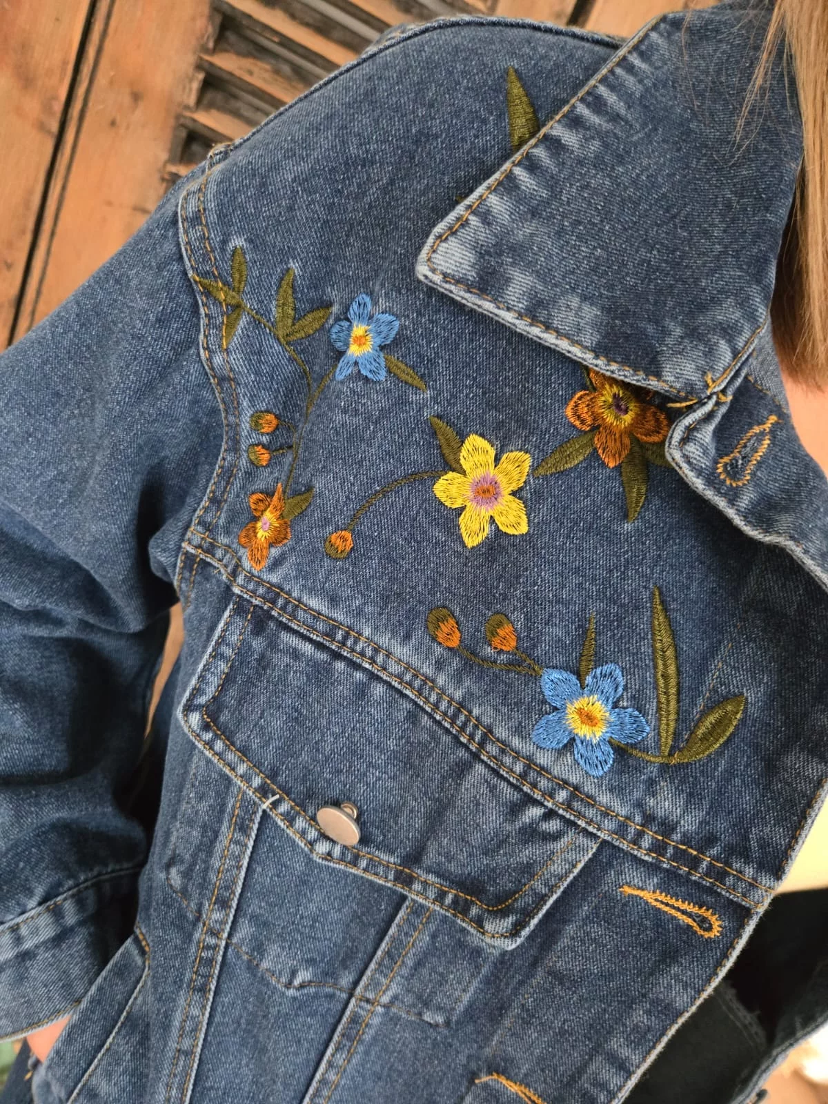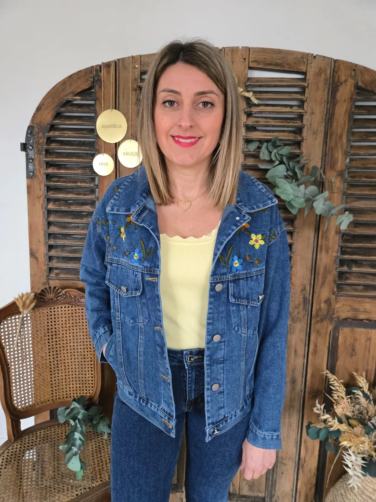 Veste en jean Calie fleurs brodées