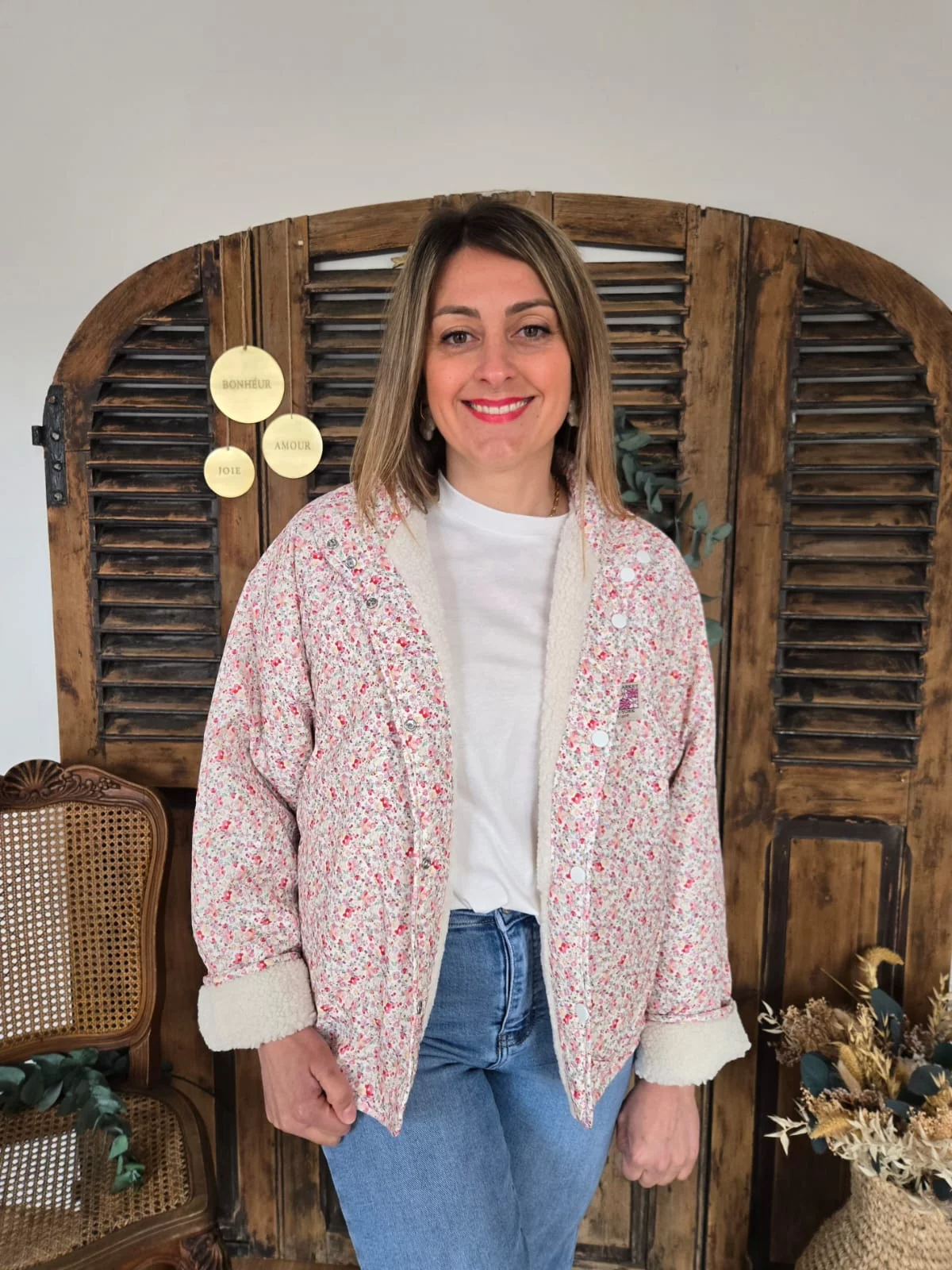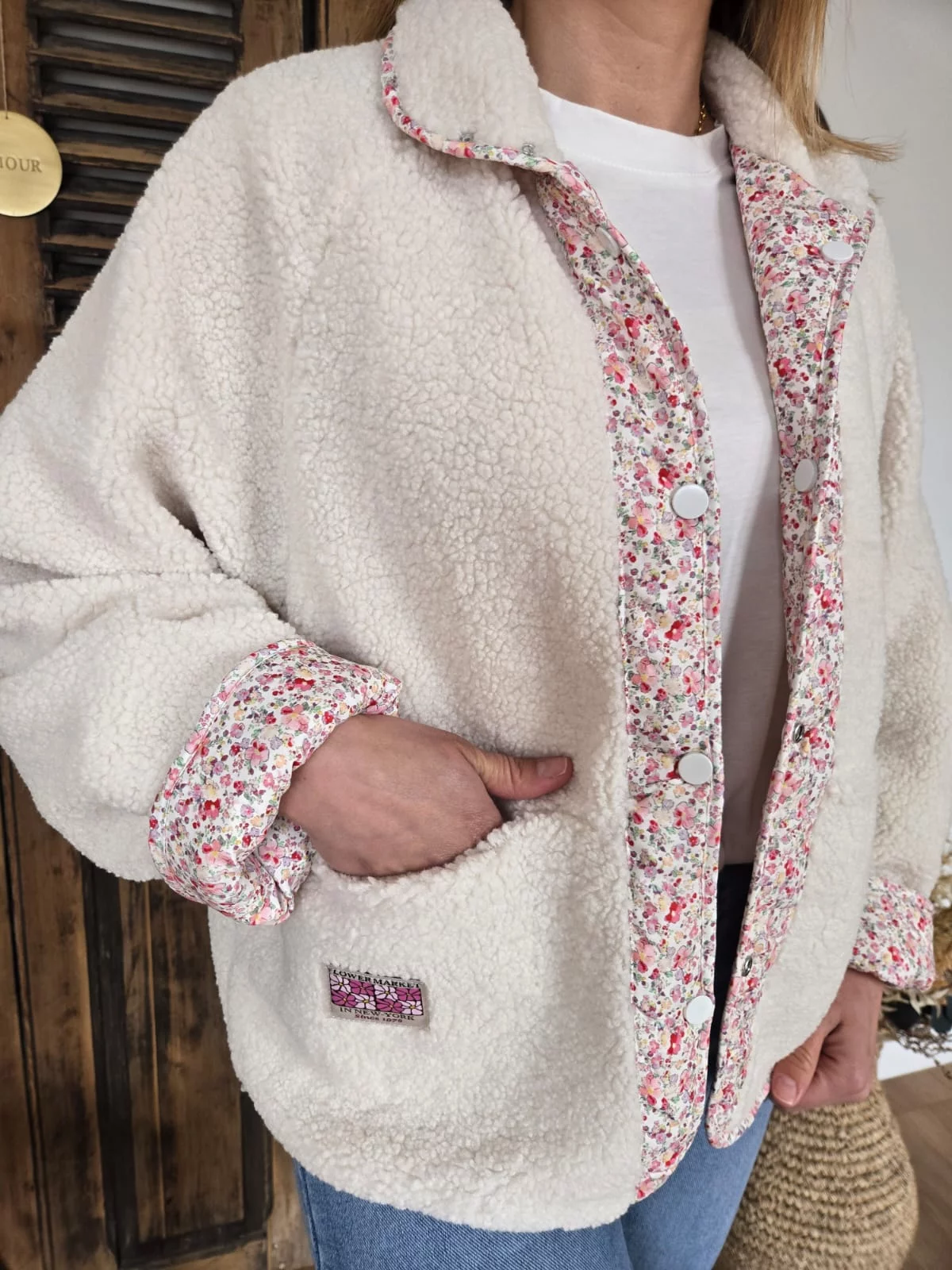 Veste Jade beige réversible bouclette fleurie